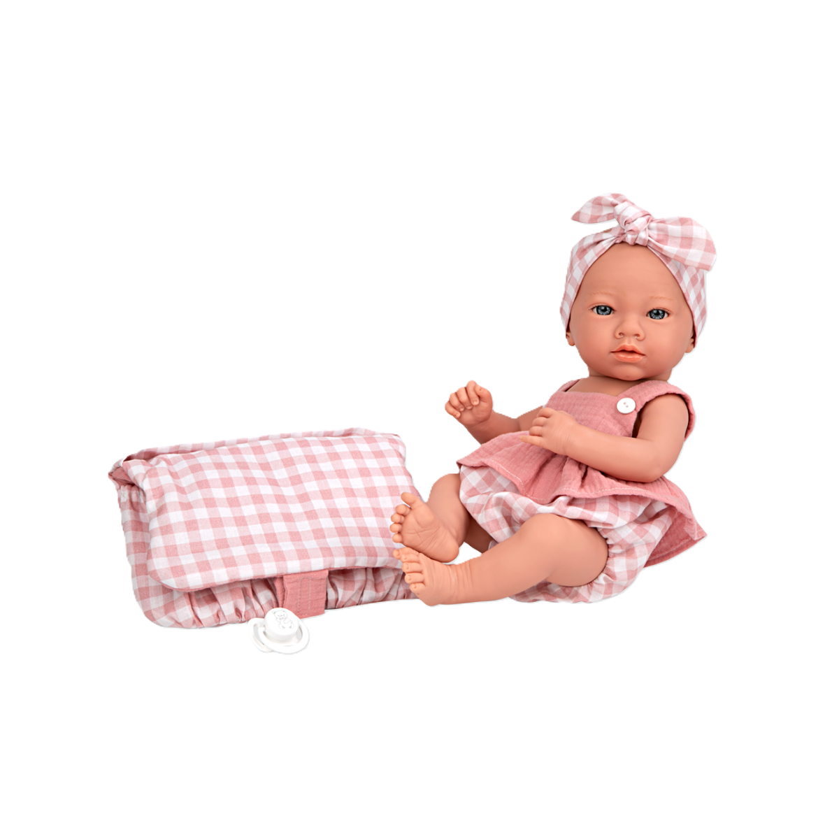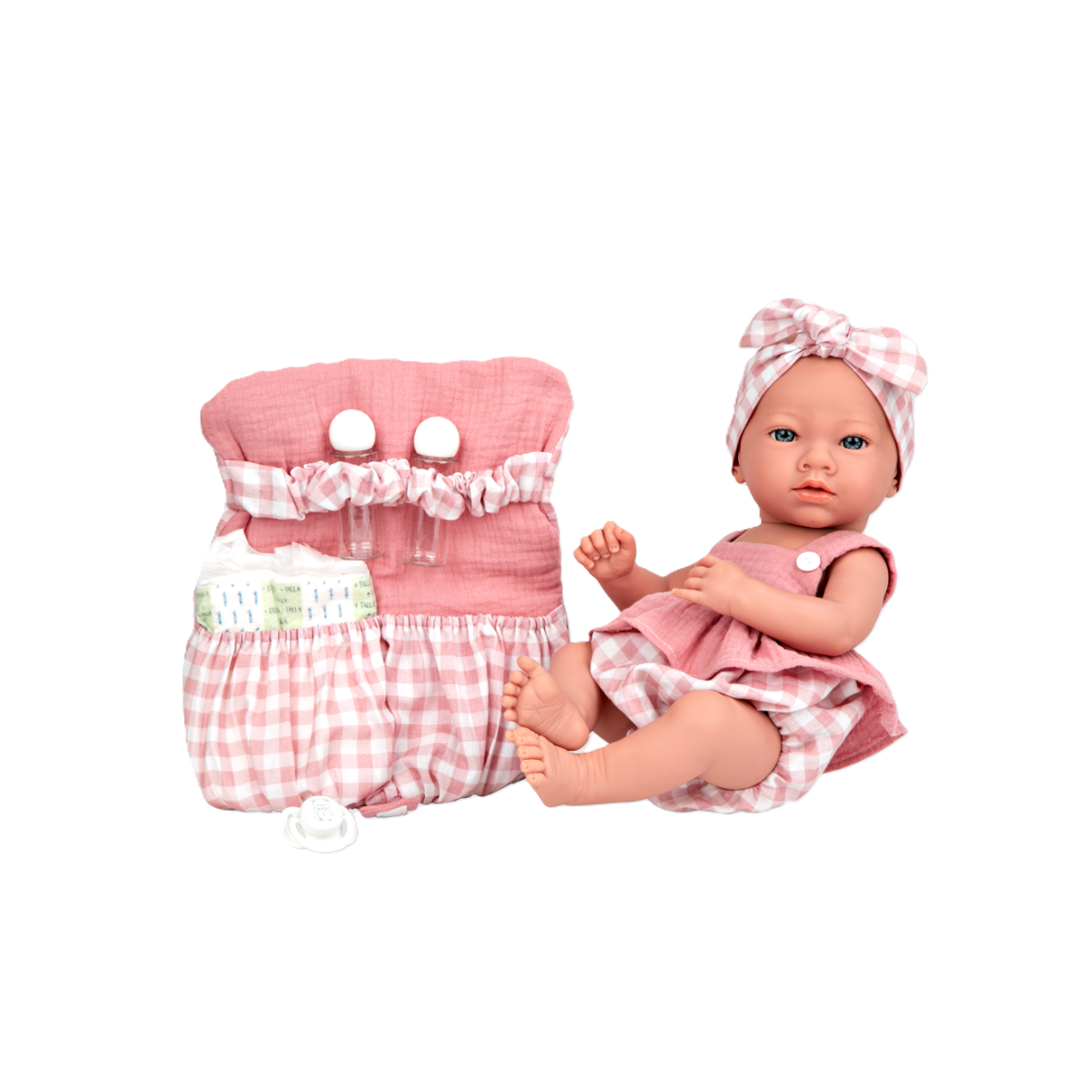 La muñeca Aria Rosa Con Bolso es ideal para el juego simbólico, fomentando la creatividad y el desarrollo de historias. Un juguete pensado para acompañar momentos de juego tranquilos y llenos de imaginación.