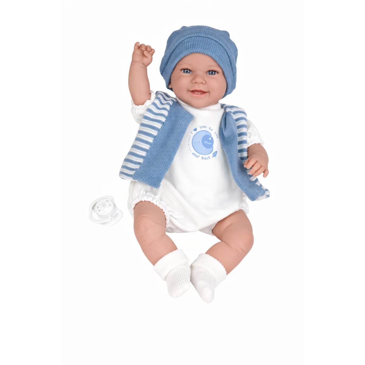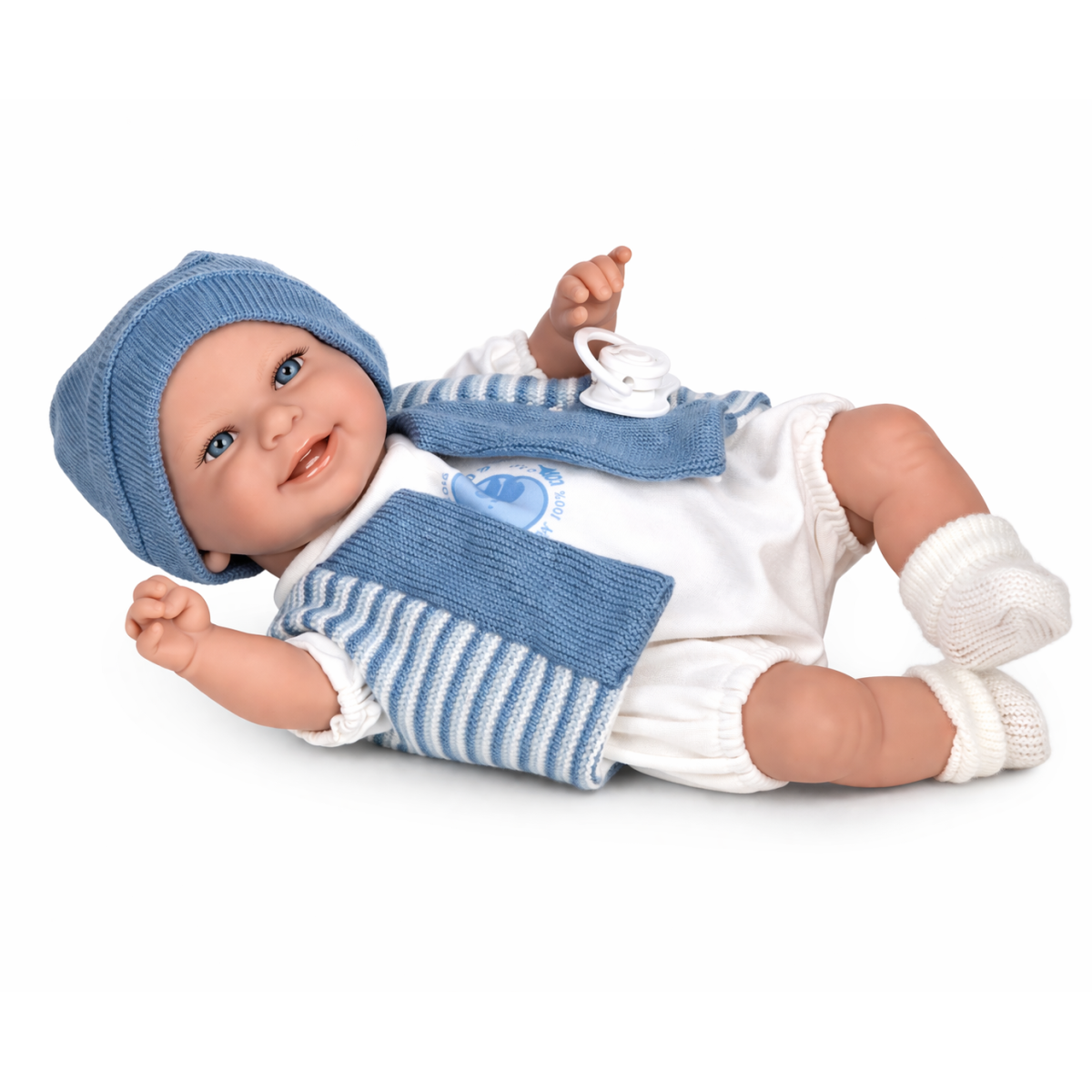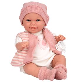 La muñeca bebé Babyto Azul Mecanismo Risa de 35 cm es una compañera ideal para el juego diario, gracias a su tamaño más grande y su diseño realista. Su expresión dulce y su conjunto en tonos azules la convierten en una opción muy atractiva para crear momentos de cuidado y juego llenos de imaginación.