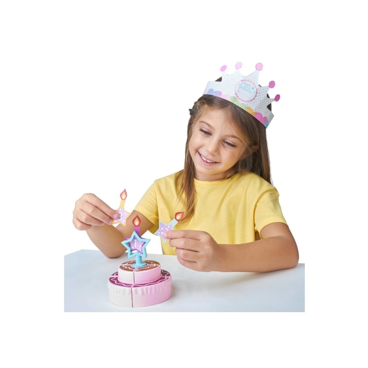 - Incluye: muñeca, tarta, corona, espátula, números para persoanilzar la tarta.