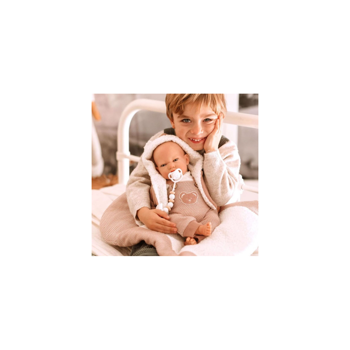 Este modelo viene acompañado de una suave manta de color rosa, ideal para envolver a la muñeca y simular aún más la experiencia de cuidar a un bebé real. Sus dimensiones de 40 cm la hacen manejable y perfecta para que los pequeños disfruten horas de juego simbólico, desarrollando su imaginación y habilidades sociales mientras cuidan y miman a su "bebé".