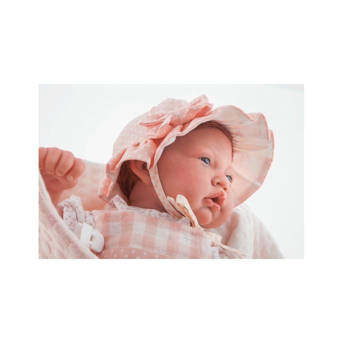 Pertenece a la línea de Sweet Reborns de Muñecas Antonio Juan e incluye un certificado oficial de nacimiento.
