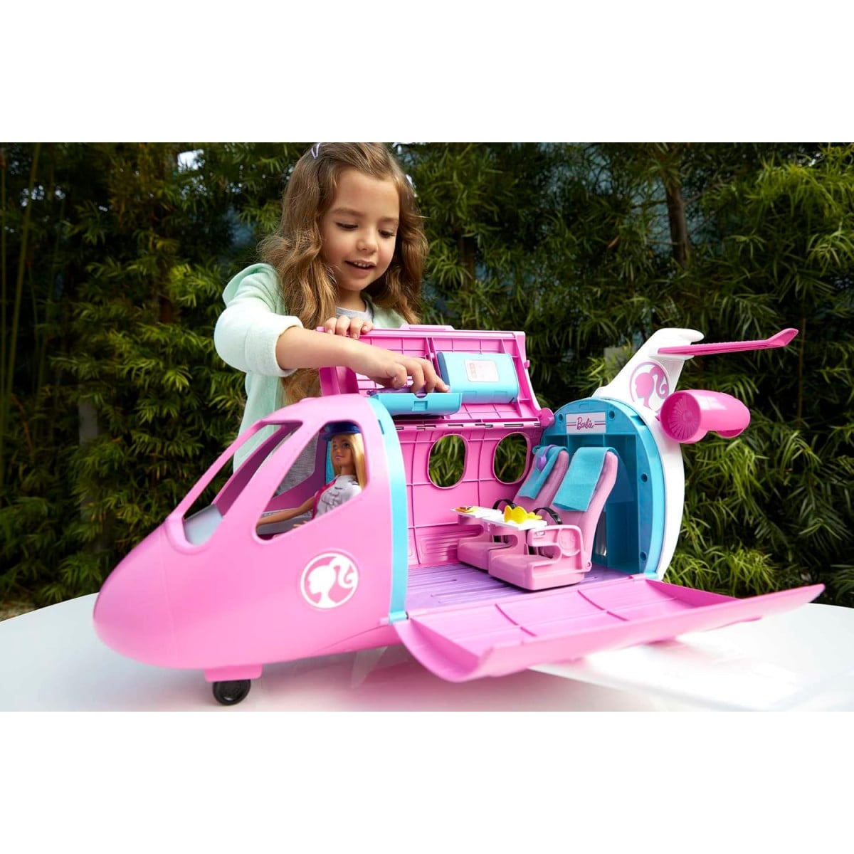 - Diseño: Avión Barbie con apertura superior y lateral que permite acceder al interior y crear diferentes escenas de juego.