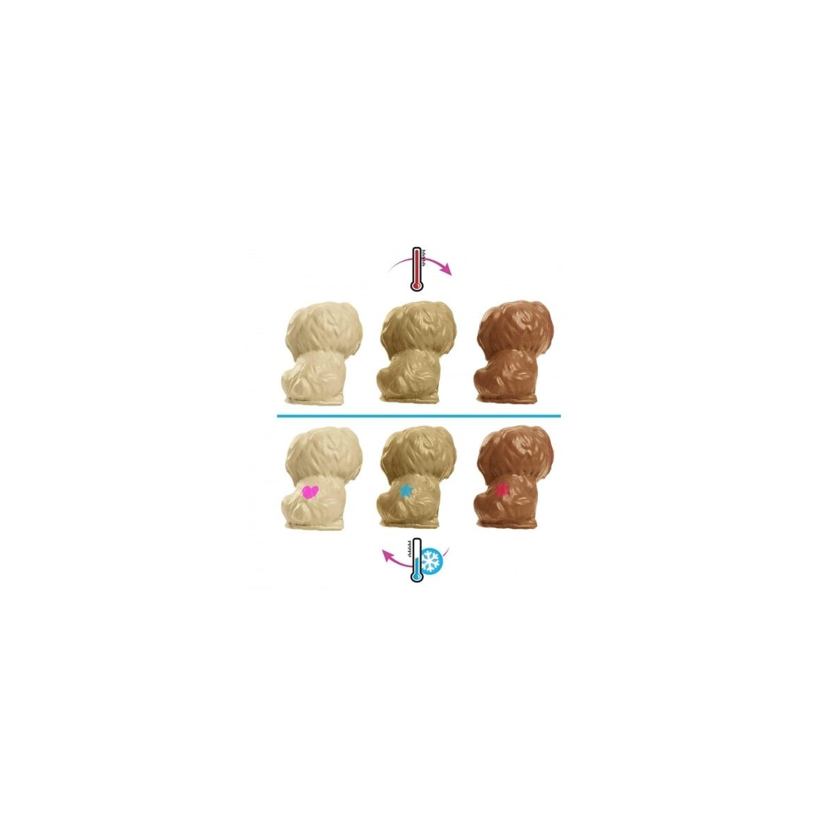 - Pasa una toalla con agua helada sobre los cachorros para descubrir una marca de nacimiento diferente en cada uno