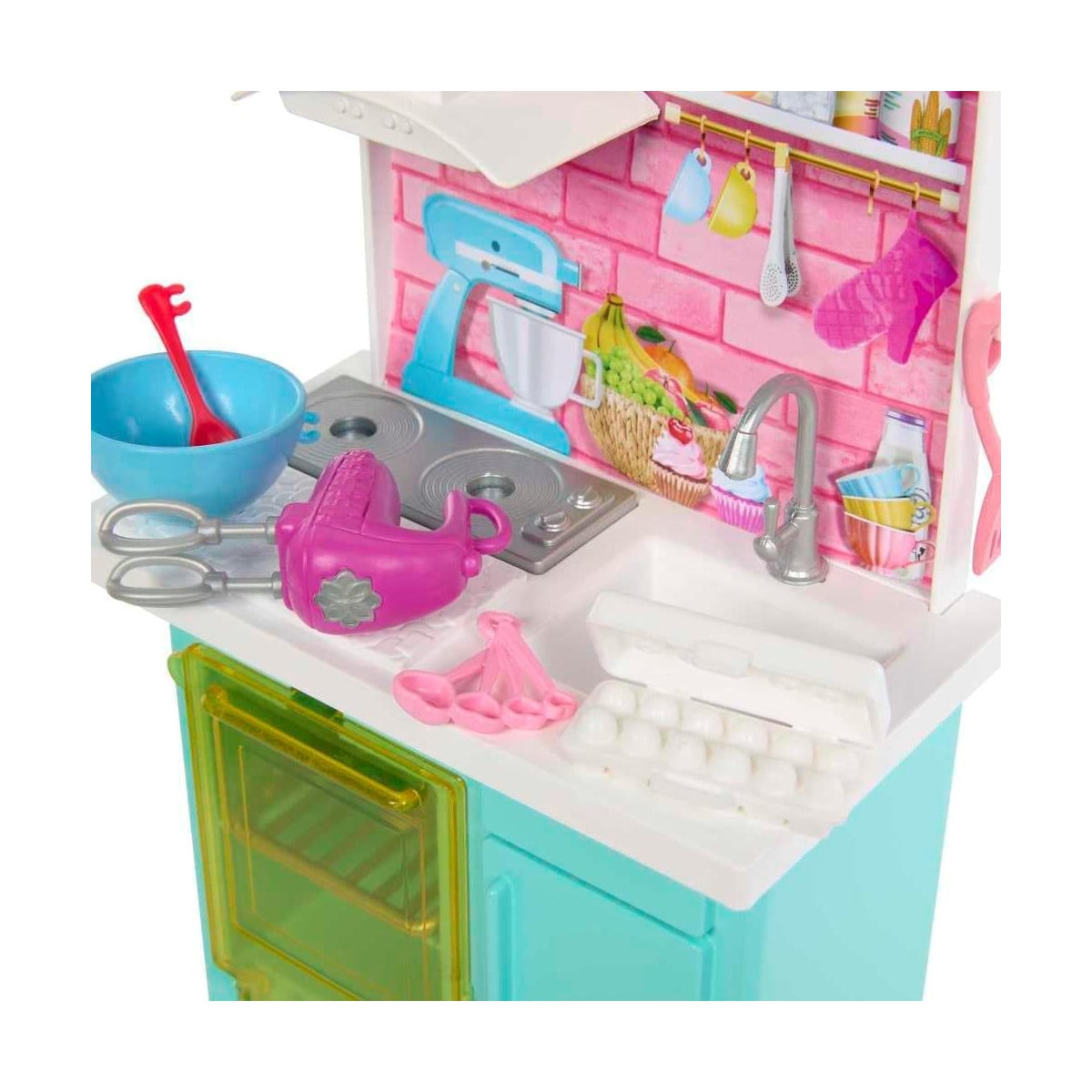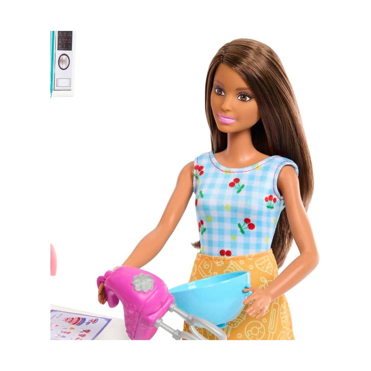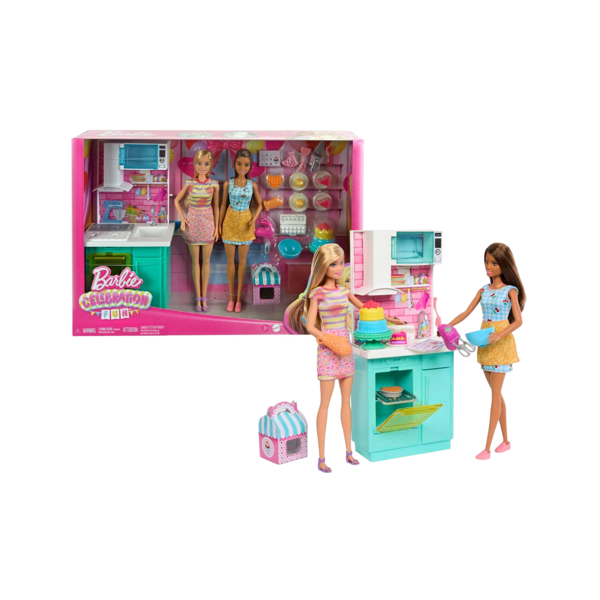 - Accesorios incluidos: 2 muñecas Barbie con outfits temáticos de cocina, más de 15 piezas entre cupcakes, tartas, utensilios de cocina, elementos de decoración y accesorios para preparar y servir postres.