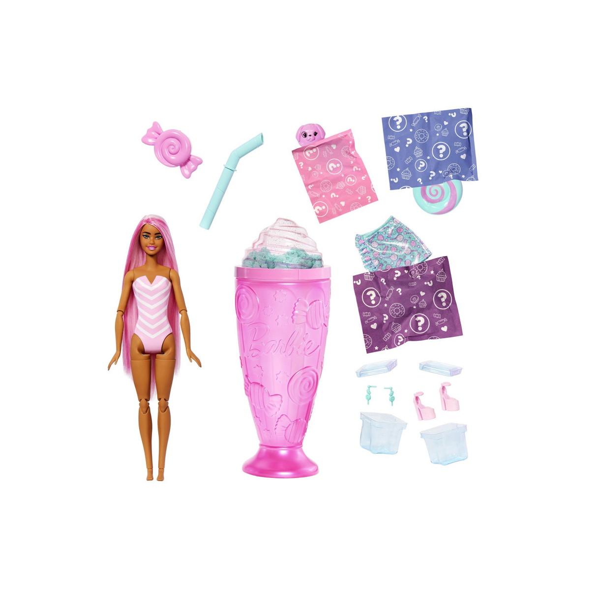Descubre la Barbie Pop Reveal Dulces Sorpresa; una muñeca sorpresa con aroma, accesorios y tres modelos disponibles para elegir y disfrutar de un juego lleno de magia.
