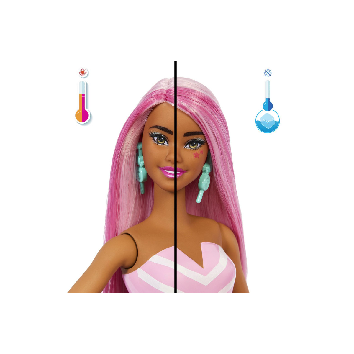En esta colección, Barbie utiliza diseños inspirados en sabores dulces y colores vibrantes, creando tres modelos distintos. Cada Barbie Pop Reveal Dulces Sorpresa tiene su propia identidad, peinado y combinación de accesorios, y lo mejor es que puedes elegir el modelo que prefieras, ya que no se envían al azar. El acabado mantiene la calidad habitual de la marca, con muñecas articuladas que pueden colocarse en diferentes posturas y accesorios fáciles de manipular, ideales para manos pequeñas y para fomentar el juego simbólico.