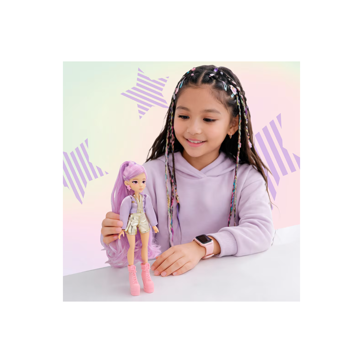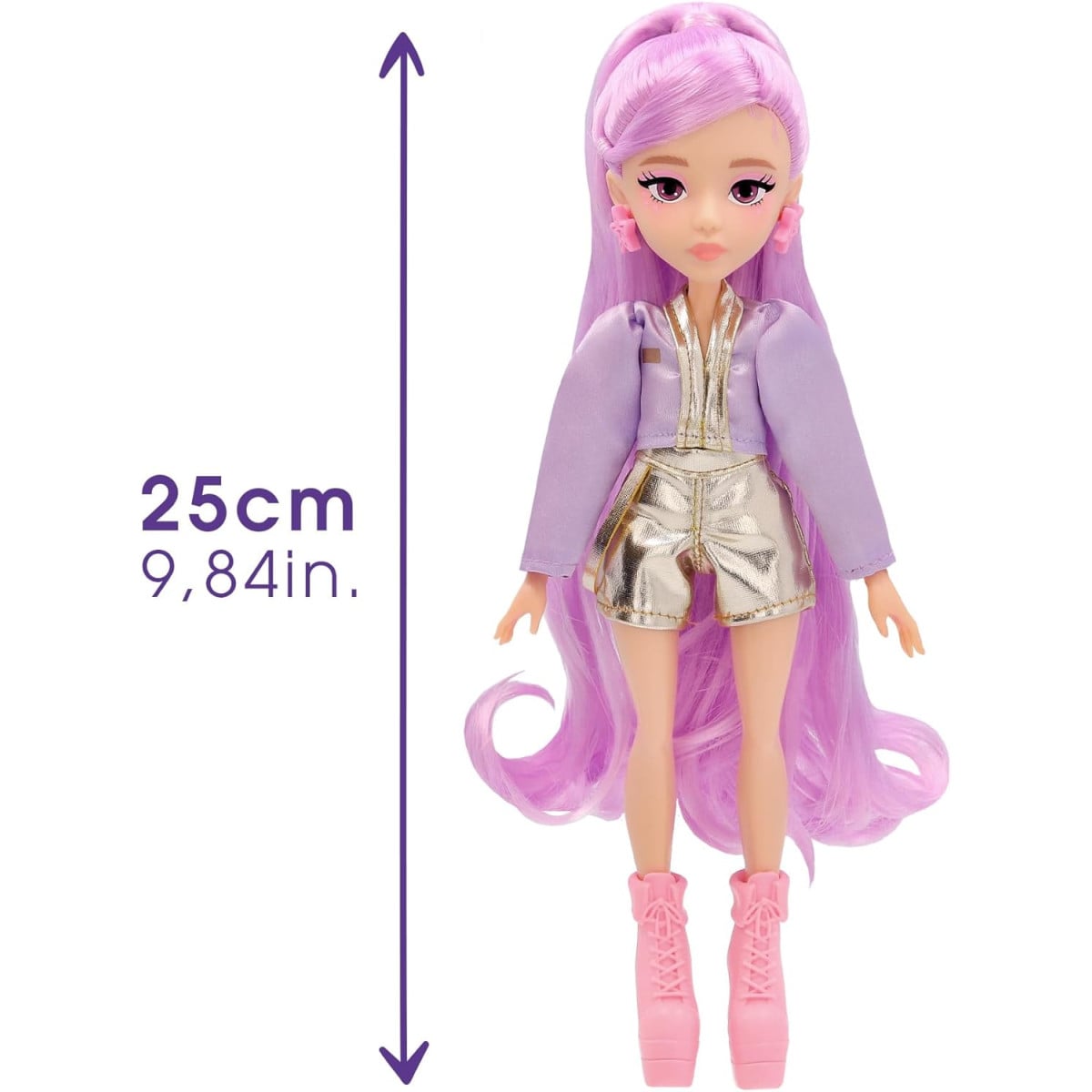 De la mano de IMC Toys, esta muñeca forma parte de la colección K-POP Idol, pensada para potenciar el juego creativo. Su diseño articulado permite colocarla en diferentes poses, mientras que su conjunto de escenario y accesorios ofrece múltiples posibilidades para combinar estilos y dar vida a cada actuación.