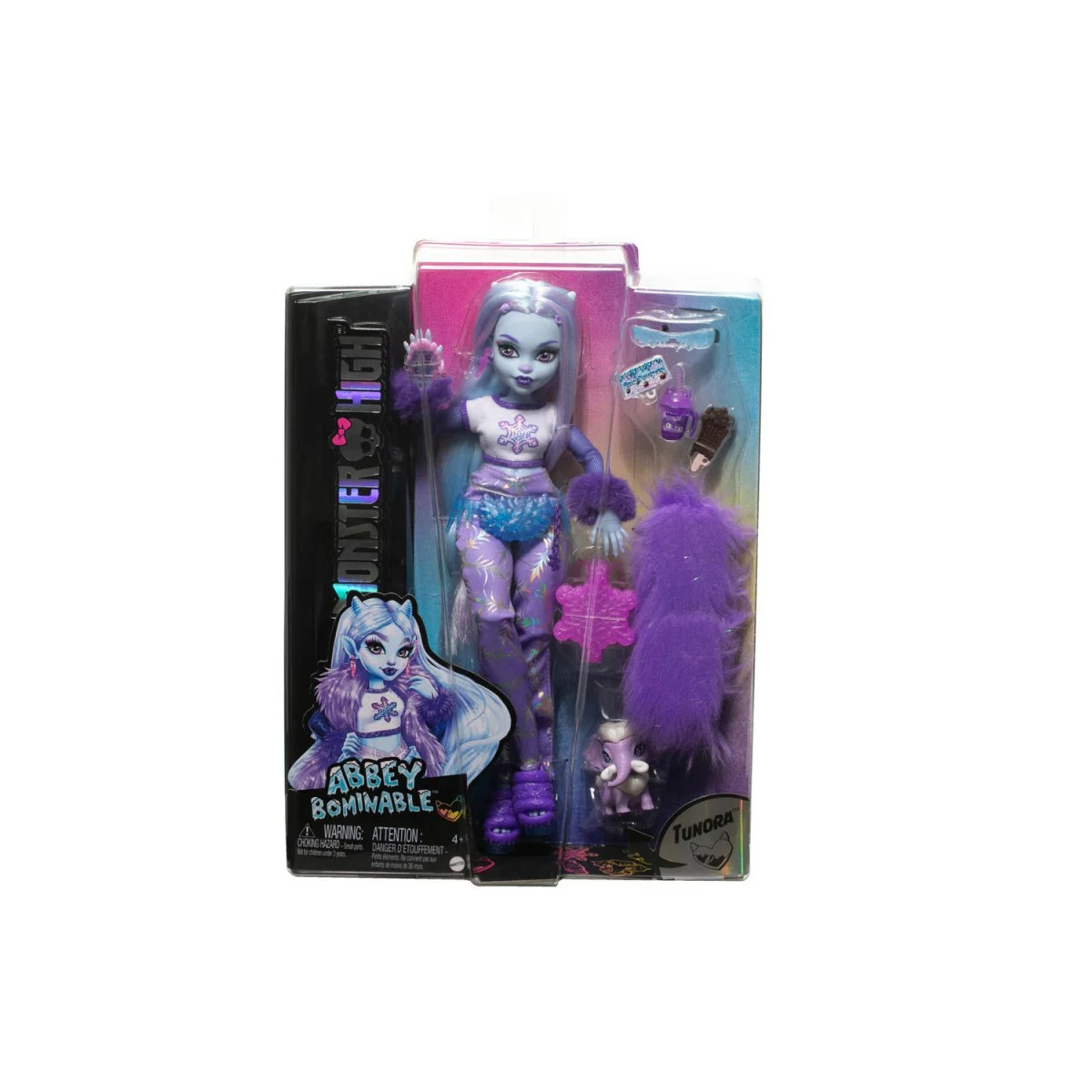 Muñeca Monster High Abbey Bominable con mascota. Diseño único y detallado, perfecta para jugar y coleccionar. ¡Ideal para fans de la serie!