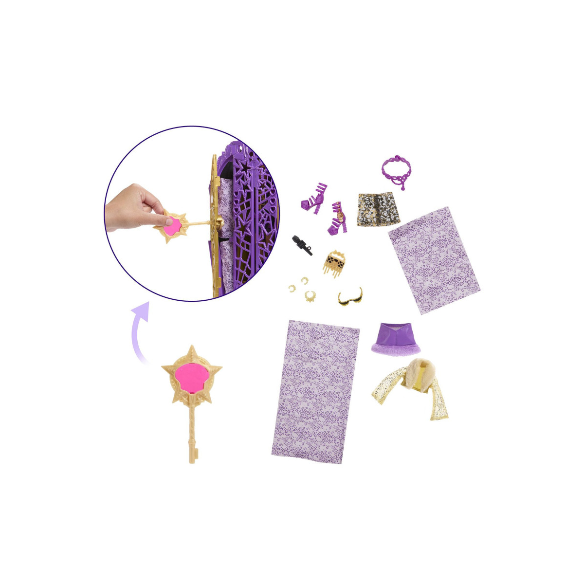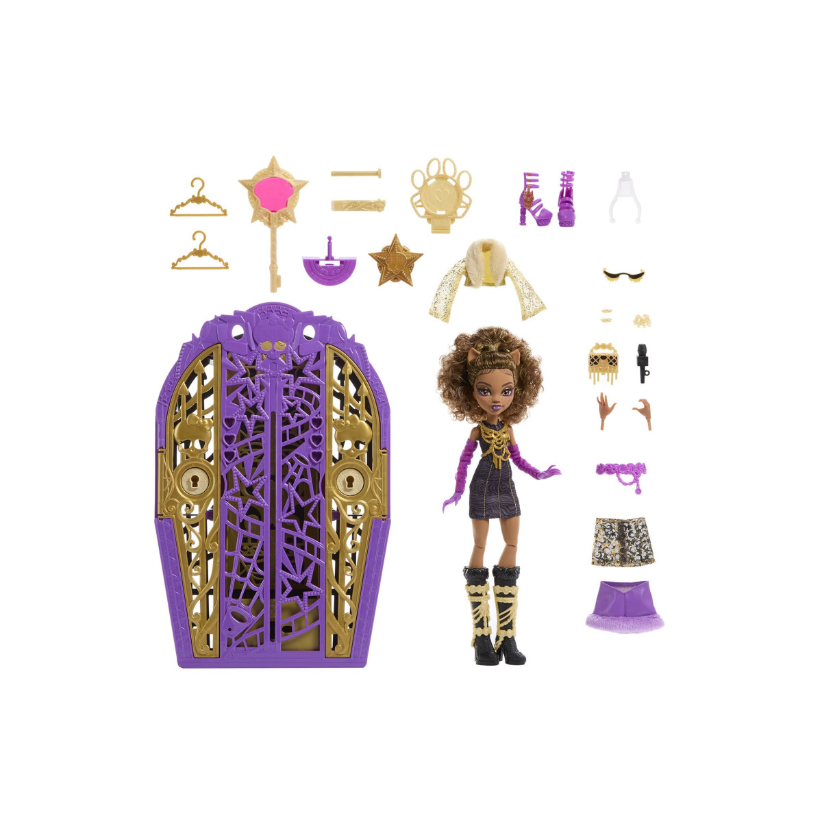 - Incluye: Clawdeen, su armario con 19 sorpresas en su interior.