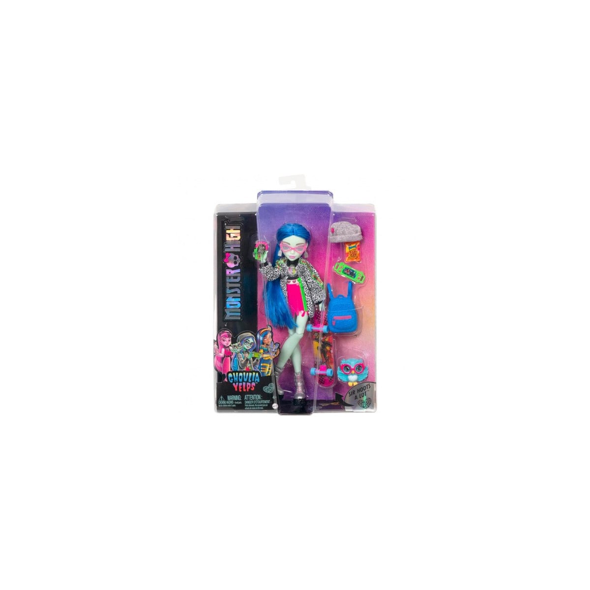 La muñeca Monster High Ghoulia Yelps es un personaje icónico de la popular serie que combina moda y un toque sobrenatural. Ghoulia destaca con su falda de vinilo rosa y una cazadora bomber que complementan su estilo zombi. Junto a su mascota, el búho Sir Hoots A Lot, ofrece una experiencia de juego emocionante y creativa. Este set incluye varios accesorios, como un monopatín y una videoconsola, perfectos para que los niños puedan inventar historias y aventuras.