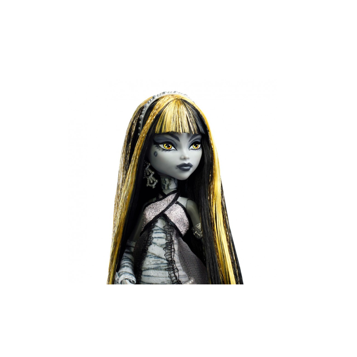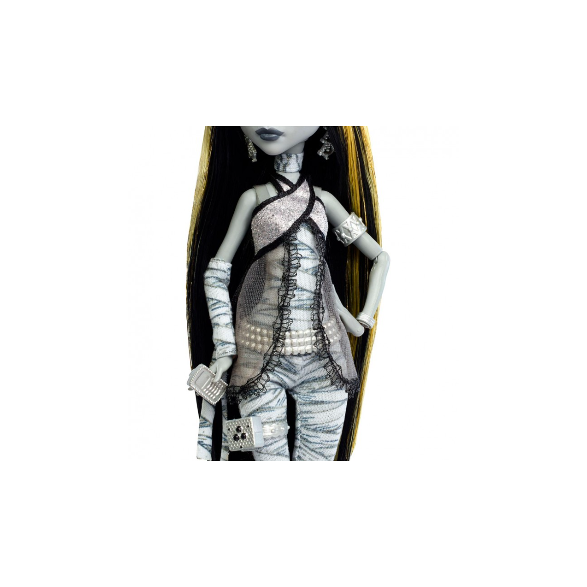 ¡Llega el glamour del cine clásico a tu colección con Monster High Reel Drama Cleo De Nile en su edición Reel Drama de Monster High! Esta muñeca trae de vuelta la elegancia monocromática, vestida con su icónica melena negra con mechones dorados, que brillan bajo el contraste en blanco y negro. Su look hace un guiño al antiguo Egipto con detalles dorados sutiles, pero siempre con esa actitud regia que caracteriza a la hija de un faraón.
