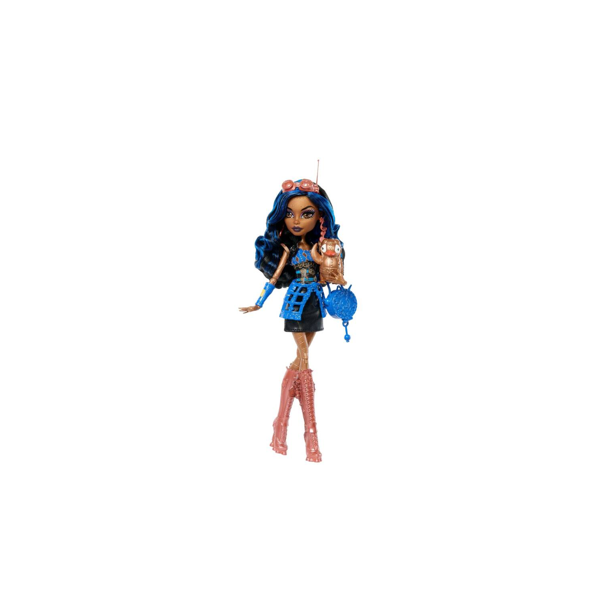 La muñeca Monster High Repro Robecca recupera a este icónico personaje con su característico estilo steampunk. Destaca por su melena azul, detalles mecánicos y un conjunto lleno de engranajes y acabados metálicos que reflejan su personalidad única.