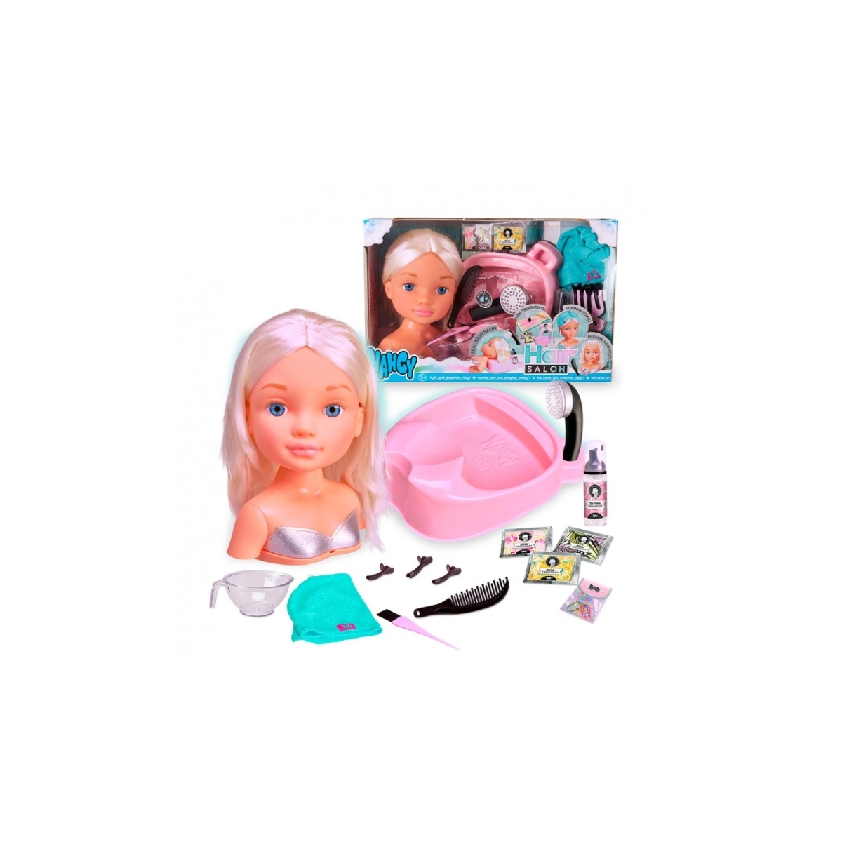 - Incluye: Un busto Nancy con accesorios para el pelo, un lavacabezas, peine, tintes y champú.