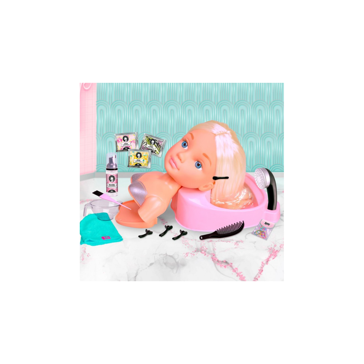 Este set educativo destaca por su lavacabezas operativo que permite lavar el cabello de Nancy con agua como si fuera un auténtico ritual de salón. Incluye champú, tratamientos capilares, mascarillas, toalla tipo turbante y demás accesorios necesarios para lavar, secar y cuidar el cabello de la muñeca con detalle. Además, incluye peines, gomitas, secador y plancha, proporcionando diversión y realismo en cada sesión de peinado.