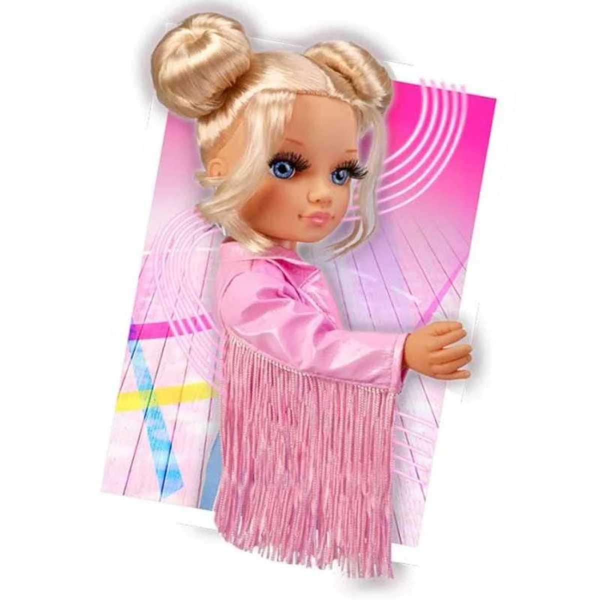 - Incluye: 1 muñeca Nancy, 1 chaqueta rosa con flecos, mini falda, top, calcetines de rayas y 1 par de patines de 4 ruedas que giran en todas las direcciones