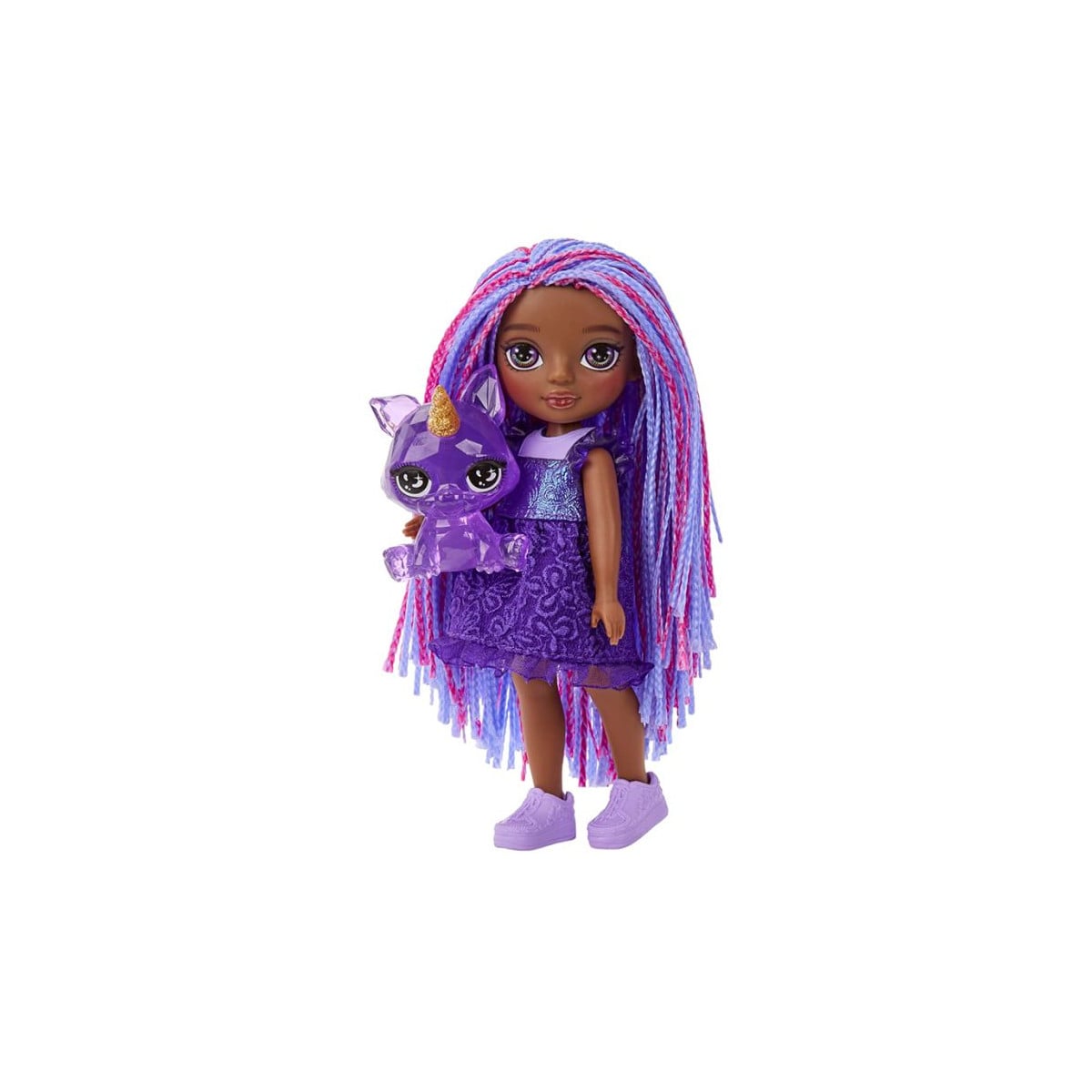 La muñeca Rainbow High Little Doll Indigo mide 14 cm ¡parecerá la hermana pequeña de tus muñecas Rainbow High!