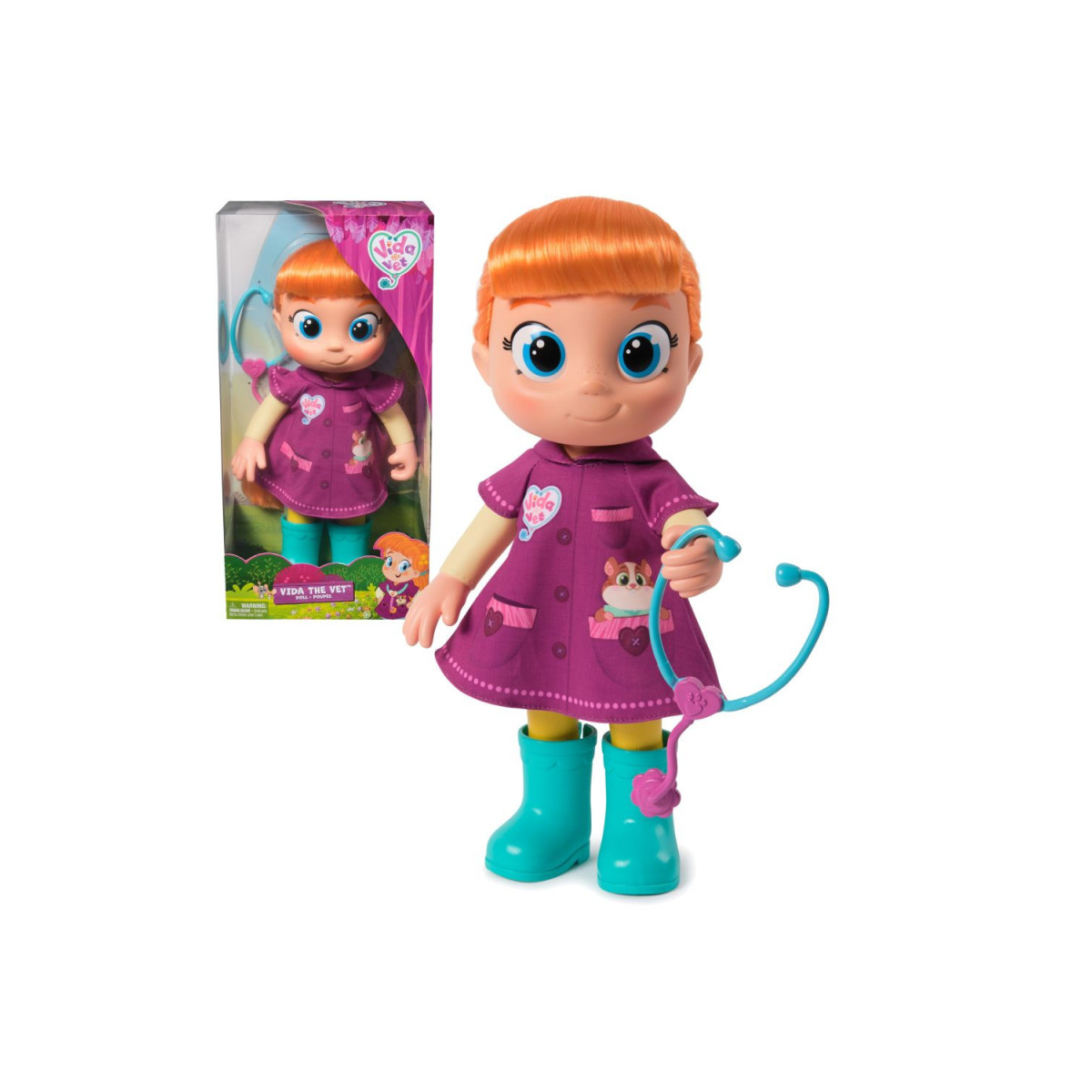 Vida está preparada para atender a cualquier animalito que necesite ayuda: lleva su bata de veterinaria, unas botas resistentes y un estetoscopio que la identifica como una experta en el cuidado de mascotas. Su tamaño, ideal para manos pequeñas permite un juego dinámico, favoreciendo la creatividad y el desarrollo del lenguaje a través del juego simbólico.