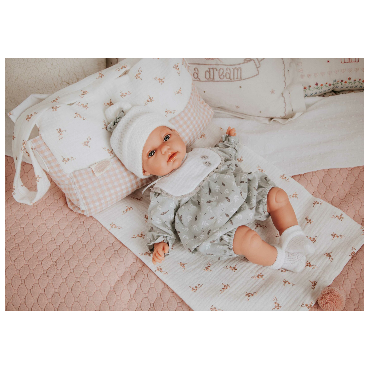 Fabricado con materiales de alta calidad y resistentes, este Bolso Cambiador De Antonio Juan está diseñado para soportar el uso diario, asegurando horas de diversión en el juego simbólico. Su diseño detallado y sus colores suaves lo hacen aún más especial, siendo un complemento imprescindible para cualquier pequeña mamá o papá de juguete.