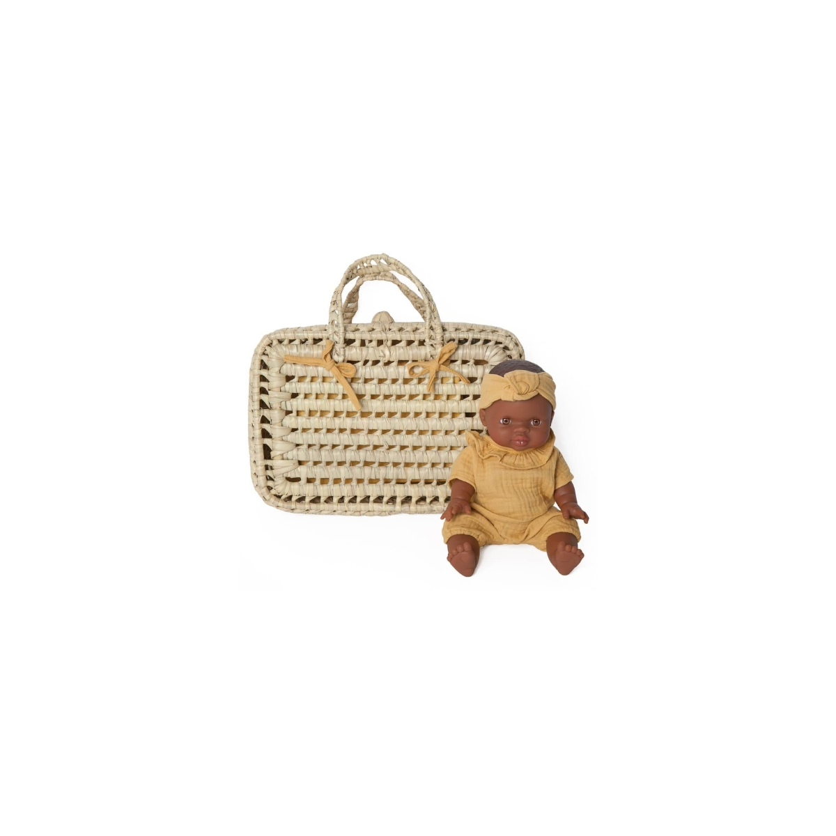 Descubre la Maleta Mimbre Bobble Mostaza; práctica y llena de encanto que convierte cada paseo en una aventura inolvidable junto a su muñeca favorita.