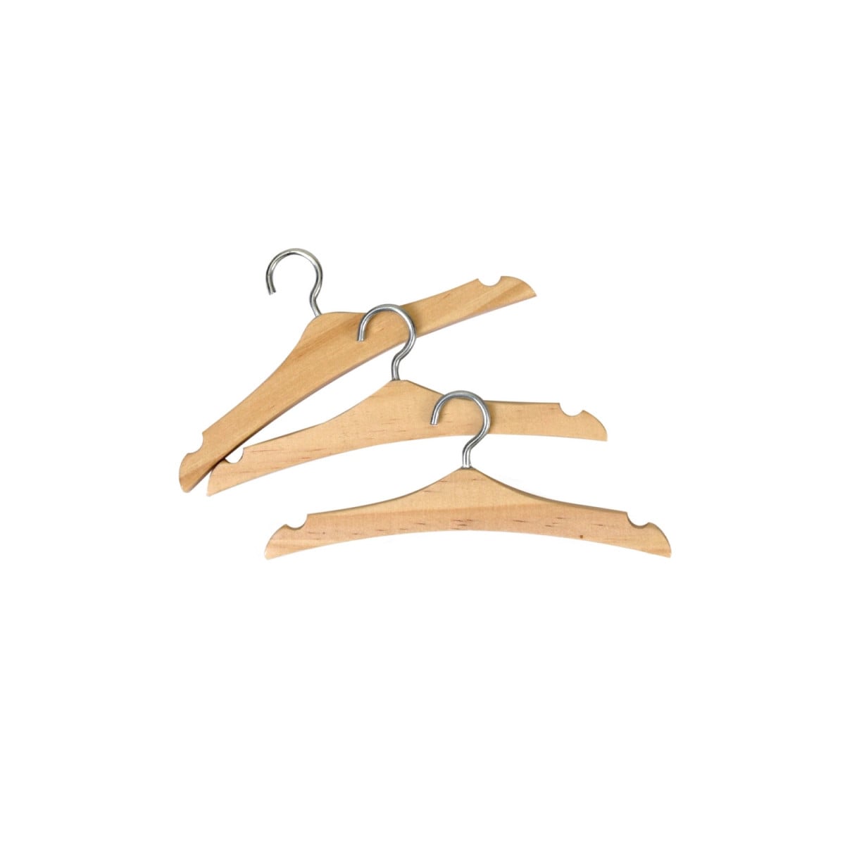Set de 6 perchas de madera de 13 cm ideales para colgar ropa de muñecas. Bonitas, resistentes y perfectas para mantener todo en orden con estilo.