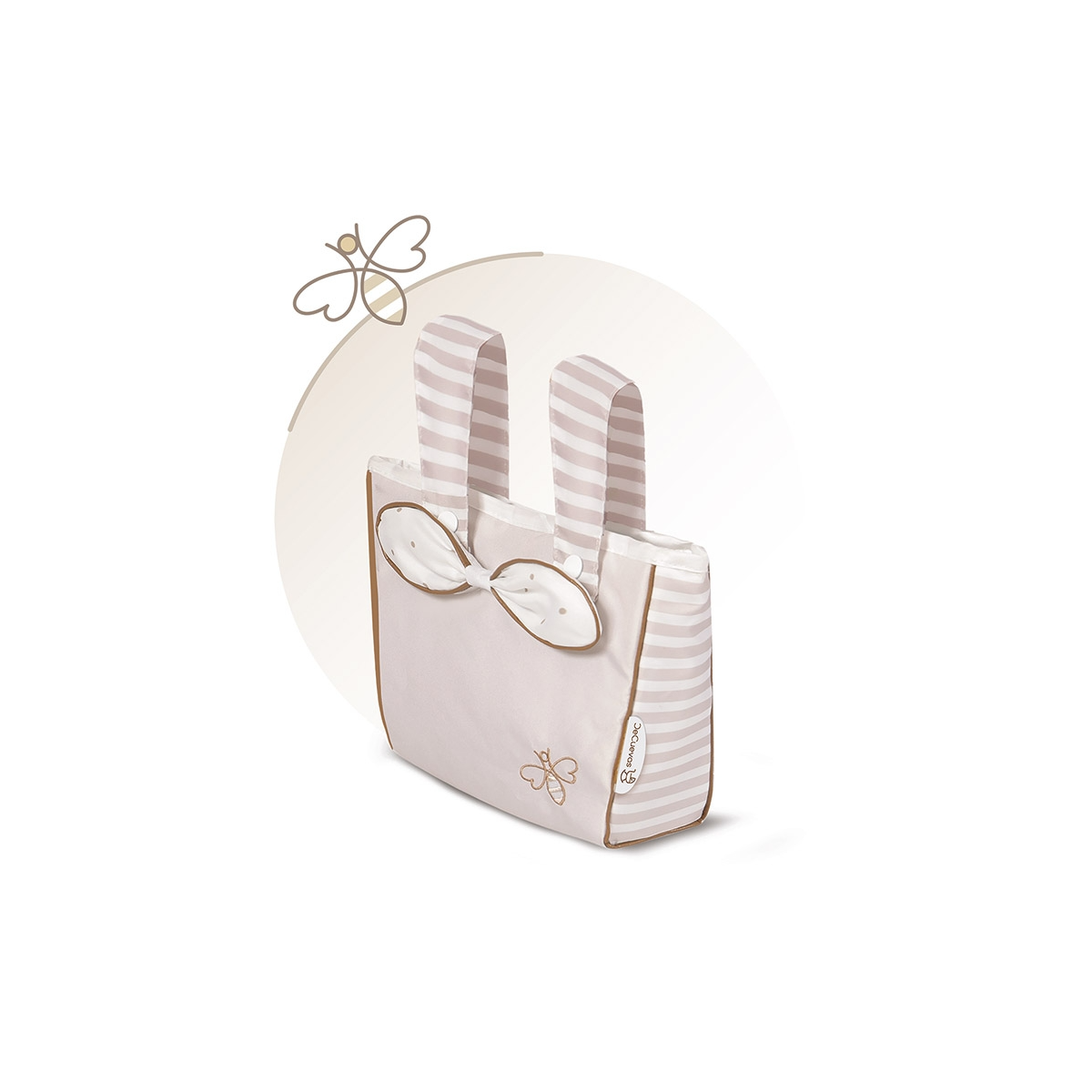 - Incluye bolso a juego con rayas, lazo decorativo y diseño de abeja bordada.