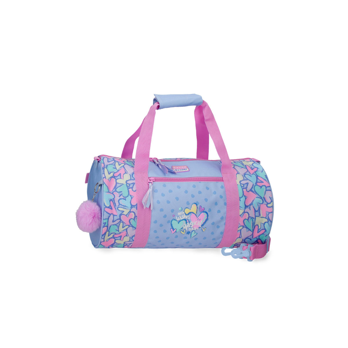 Esta bolsa de deporte infantil combina funcionalidad y estilo con un diseño alegre lleno de corazones en tonos pastel. Es perfecta para actividades deportivas, excursiones o incluso para llevar todo lo necesario a clase de extraescolares.