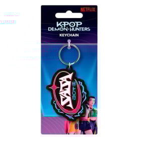 Llavero oficial Logo Huntrix K-Pop Demon Hunters en goma resistente con anilla metálica. Perfecto para mochilas, estuches o llaves. Un detalle ideal para fans de la colección.