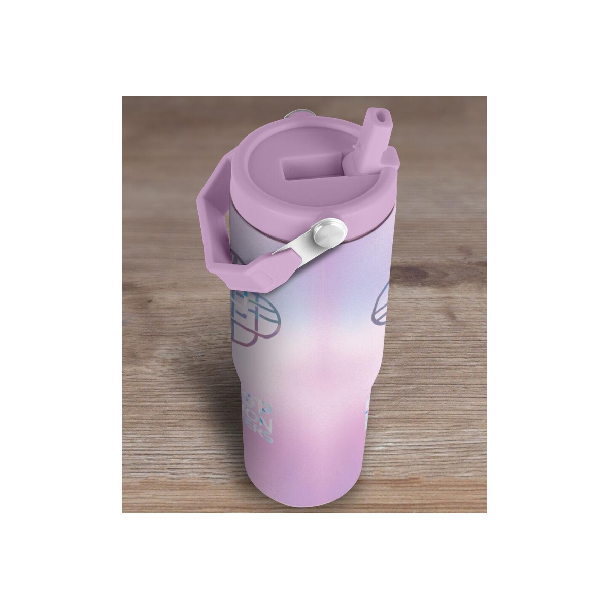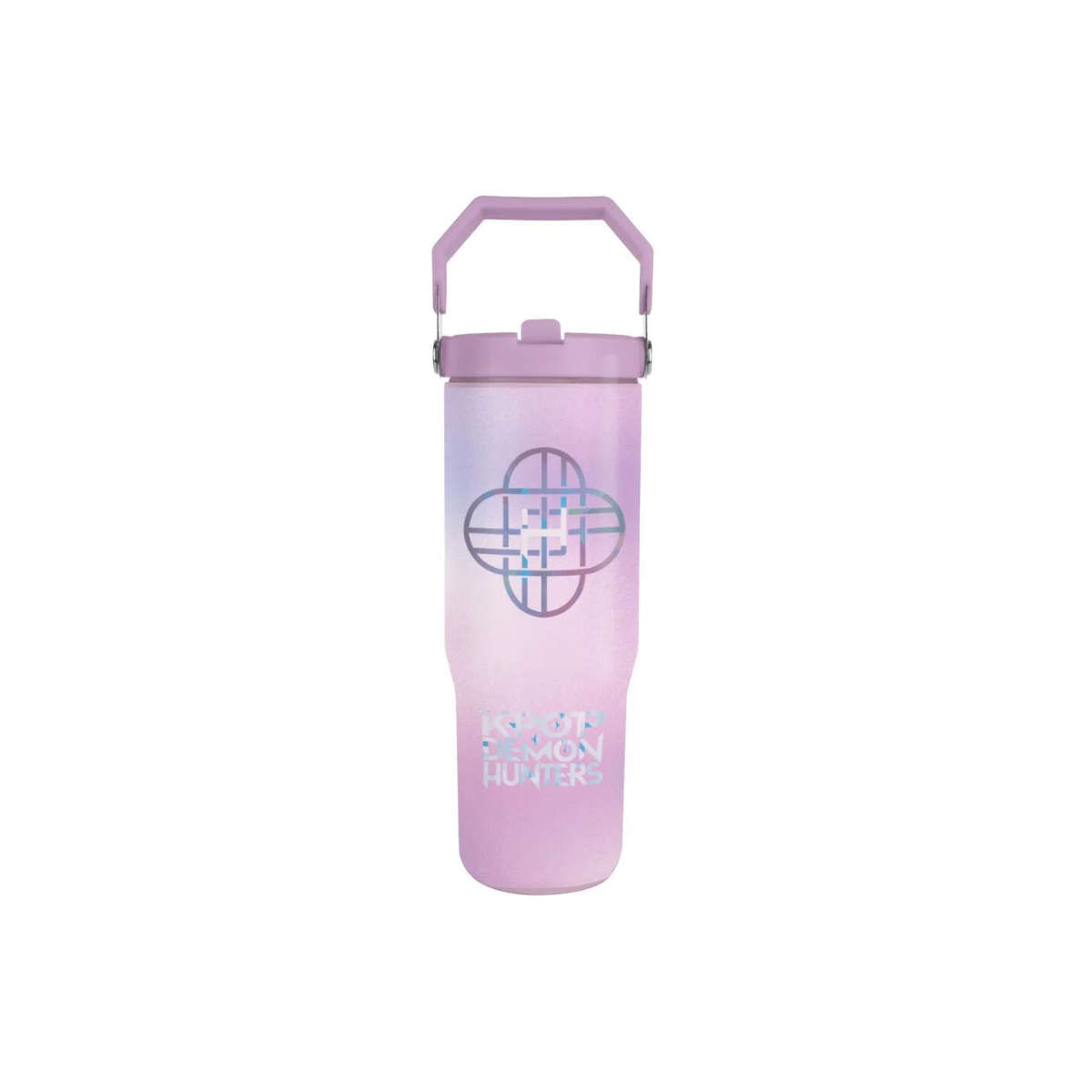 Botella de acero inoxidable 850 ml K-Pop Demon Hunters. Diseño rosa multicolor, resistente y con asa para fácil transporte. Ideal para colegio, deporte o uso diario.
