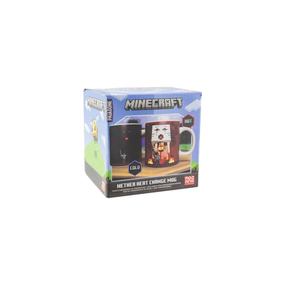 Taza termocolor Minecraft Nether que cambia de diseño con el calor. Ideal para niños y niñas fans del juego y para sorprender en cada desayuno.