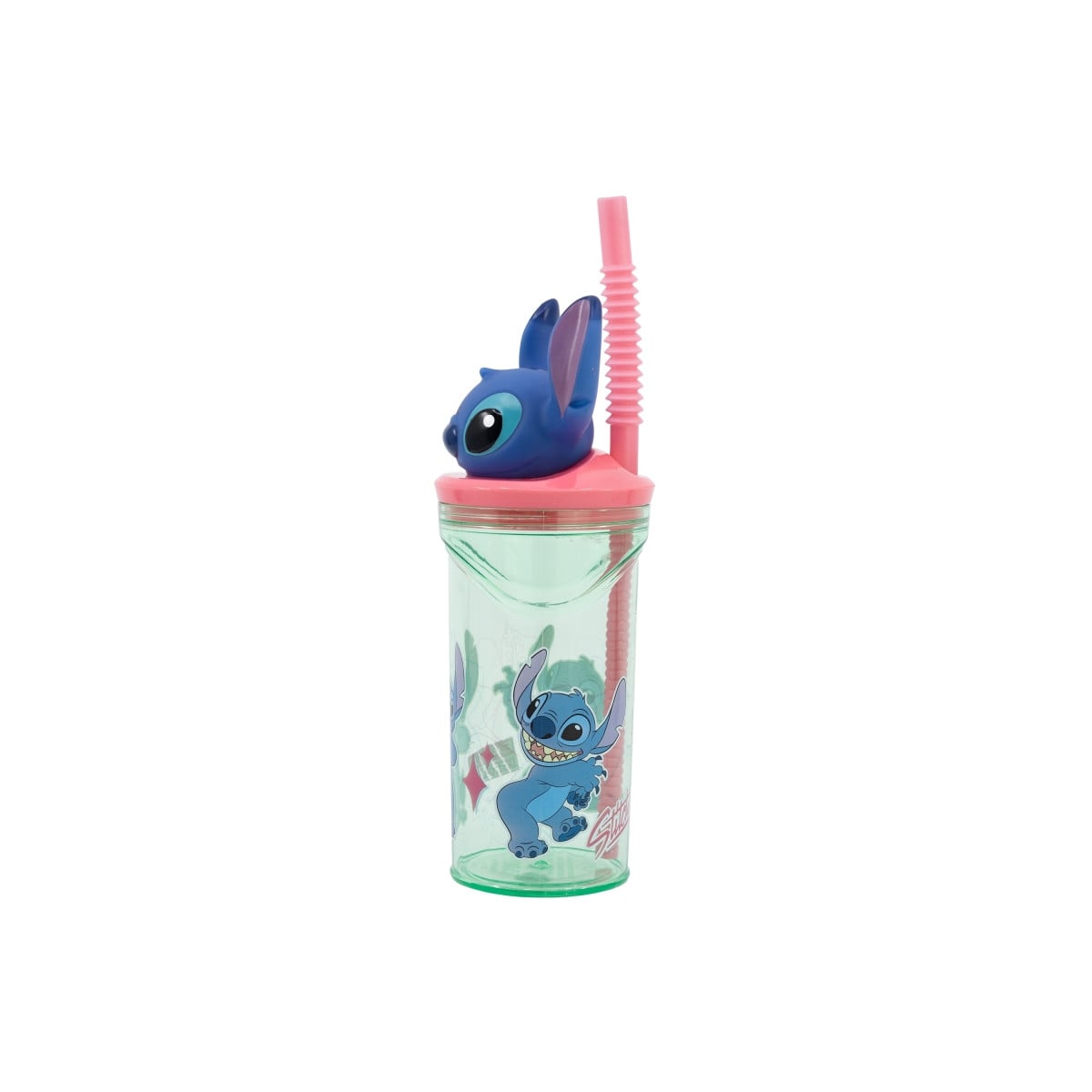 Vaso animado con pajita y figura 3D Stitch Flowers de 360 ml de capacidad para los más peques.