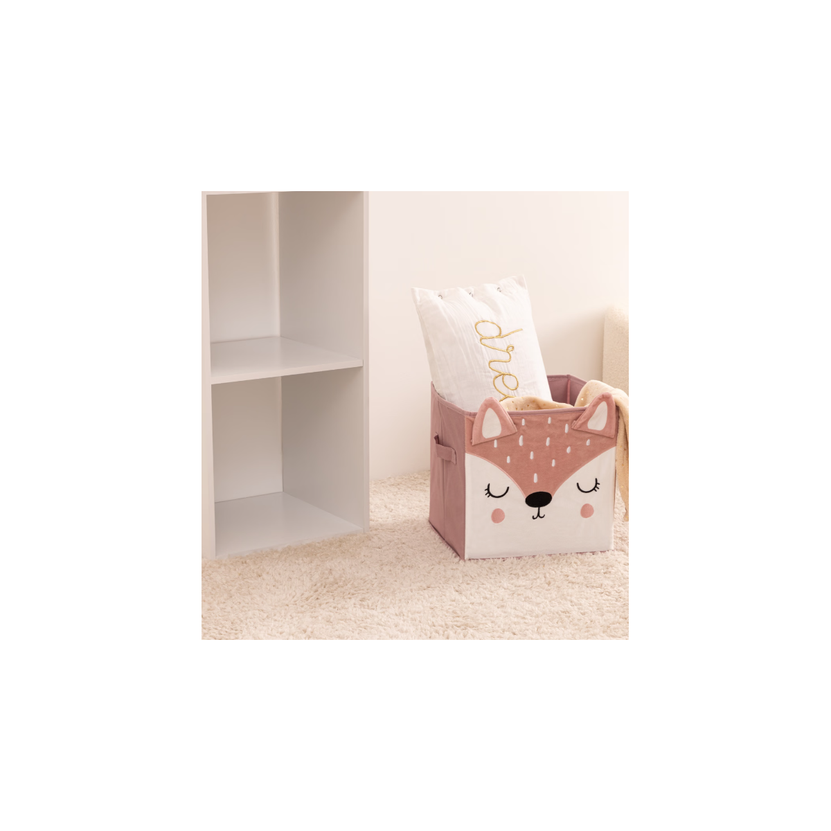 La Cesta Plegable Zorro Rosa es la solución perfecta para mantener el orden en la habitación de los niños sin renunciar al estilo y la diversión. Con su diseño encantador en tonos rosados y la imagen de una simpática zorrita, este contenedor aporta un toque lúdico y acogedor al espacio infantil. Su estructura cuadrada y dimensiones estándar permiten integrarlo fácilmente en estanterías y muebles modulares, facilitando la organización de juguetes, libros y otros objetos.