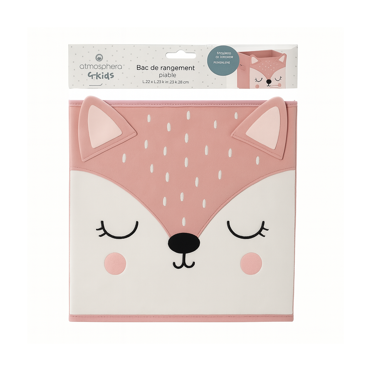 Fabricado en tejido de poliéster con una estructura interna de cartón ligero, esta Cesta Plegable Zorro Rosa combina resistencia y ligereza. Su diseño plegable permite guardarlo cómodamente cuando no se utiliza, optimizando el espacio disponible. Además, su estética armoniza con otros elementos decorativos de la línea infantil de Atmosphera, permitiendo crear un ambiente coherente y atractivo para los más pequeños.