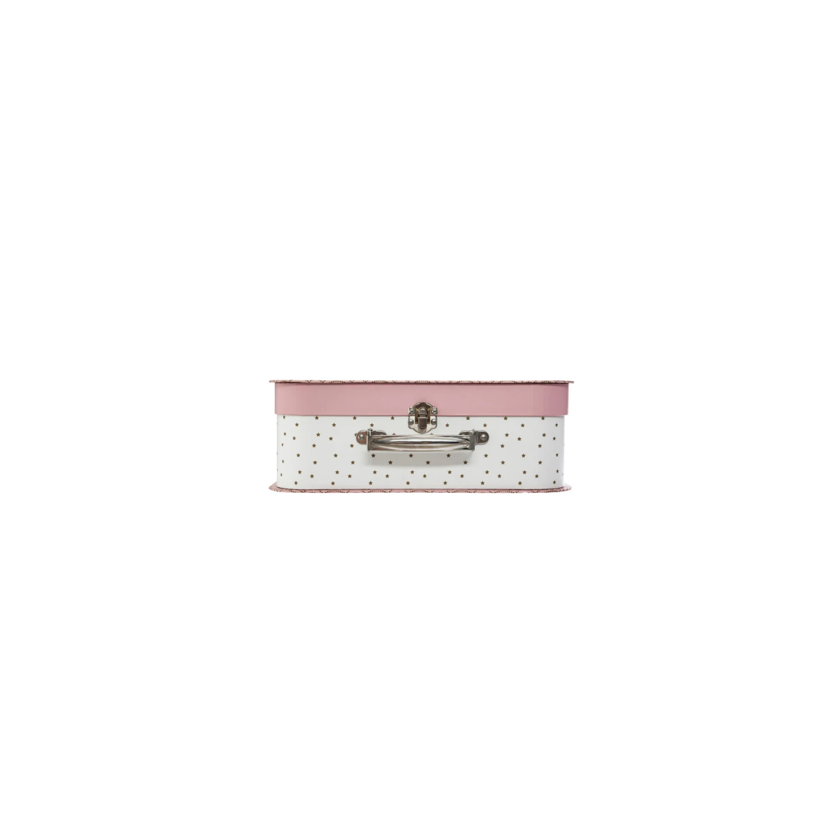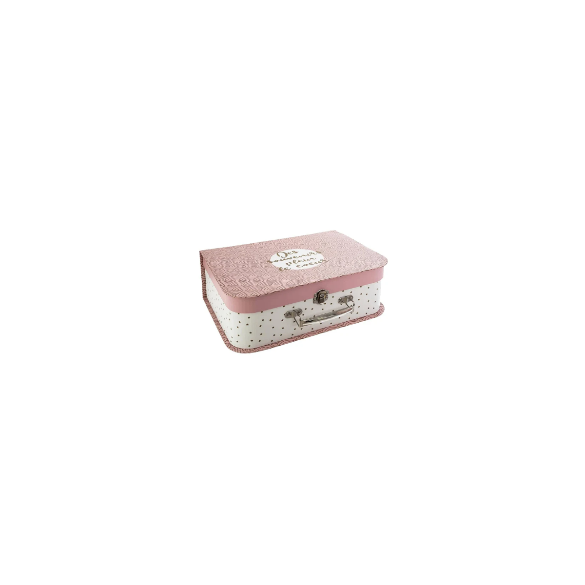 Gracias a su estructura resistente de cartón reforzado y su cierre de pestillo metálico, garantiza seguridad y facilidad de uso. El asa también metálica facilita su transporte, por lo que incluso niñas y niños podrán llevarla con total autonomía. Su tamaño permite contener todo lo necesario sin ocupar demasiado espacio, siendo además apilable junto a las otras maletas de la colección.