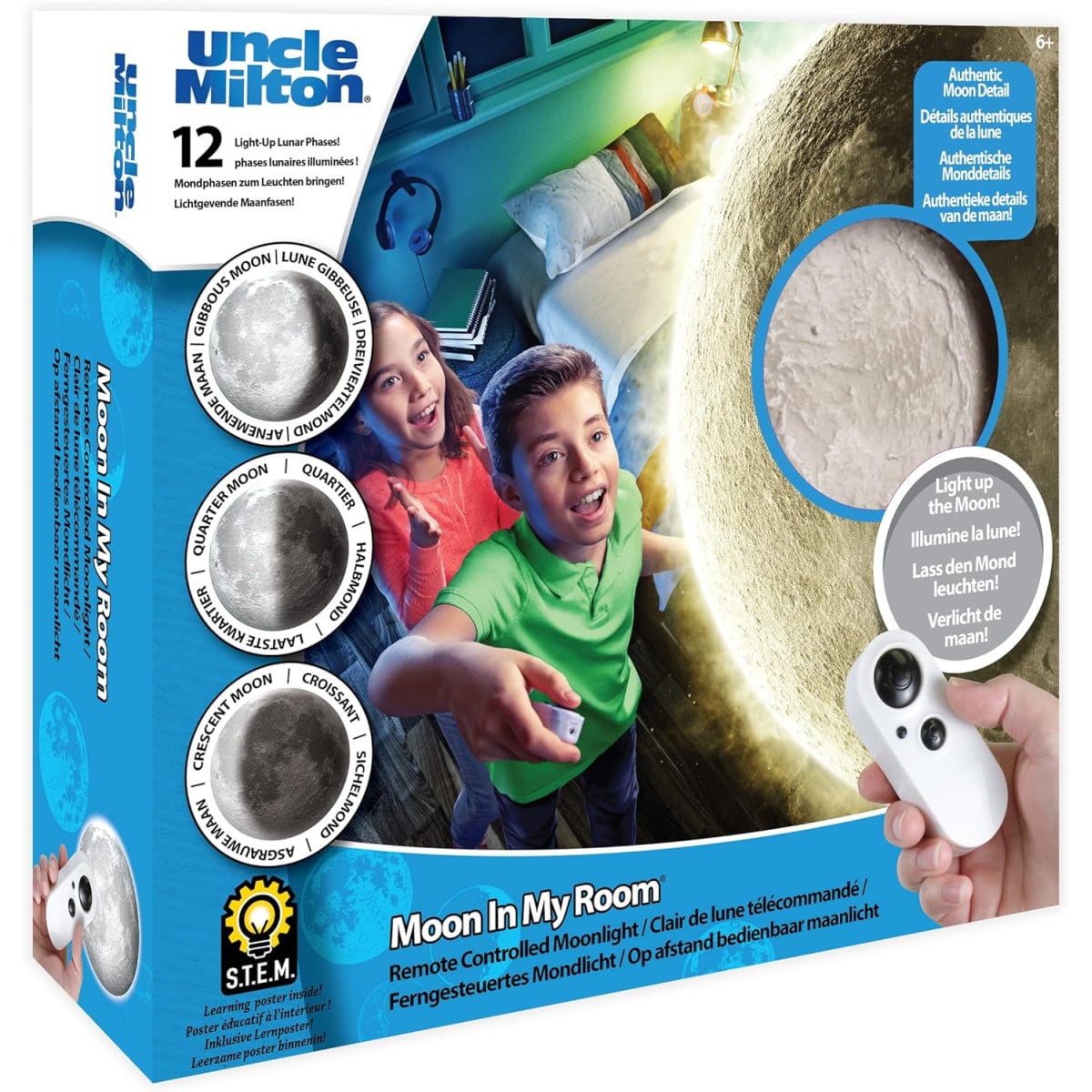 Moon In My Room es una lámpara lunar con fases reales y control remoto, perfecta para decorar y aprender sobre el espacio de forma interactiva.