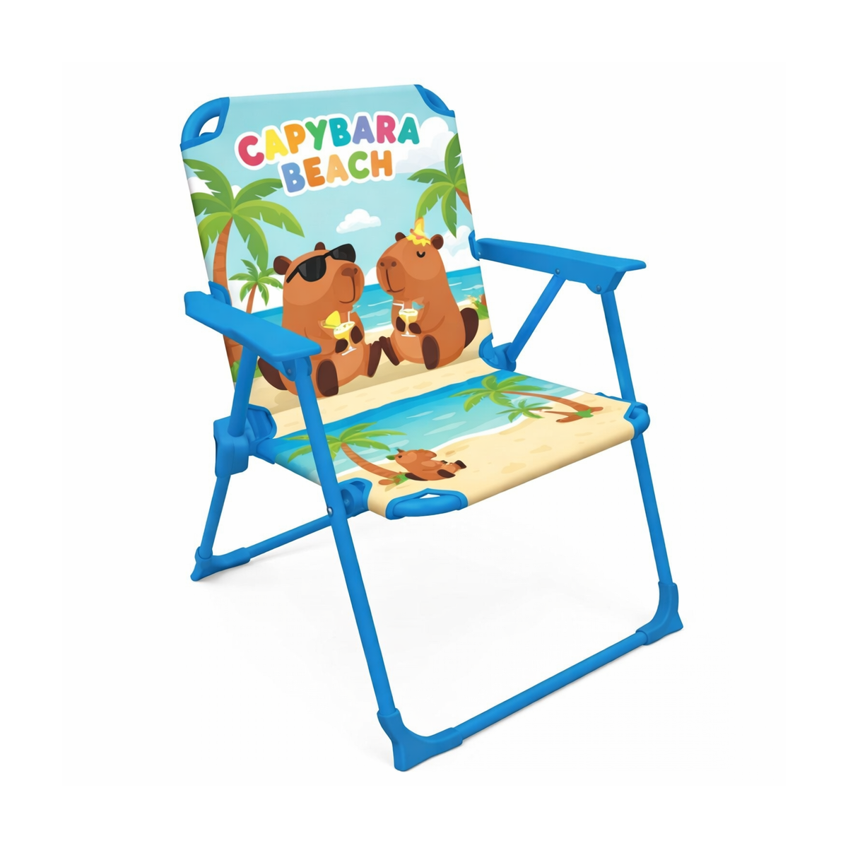 La Silla Metálica Plegable Capybara es perfecta para que niños y niñas disfruten de sus momentos de descanso tanto en casa como al aire libre. Con un diseño alegre protagonizado por simpáticas capibaras en un entorno de playa, aporta un toque divertido y veraniego que encanta a los más pequeños.