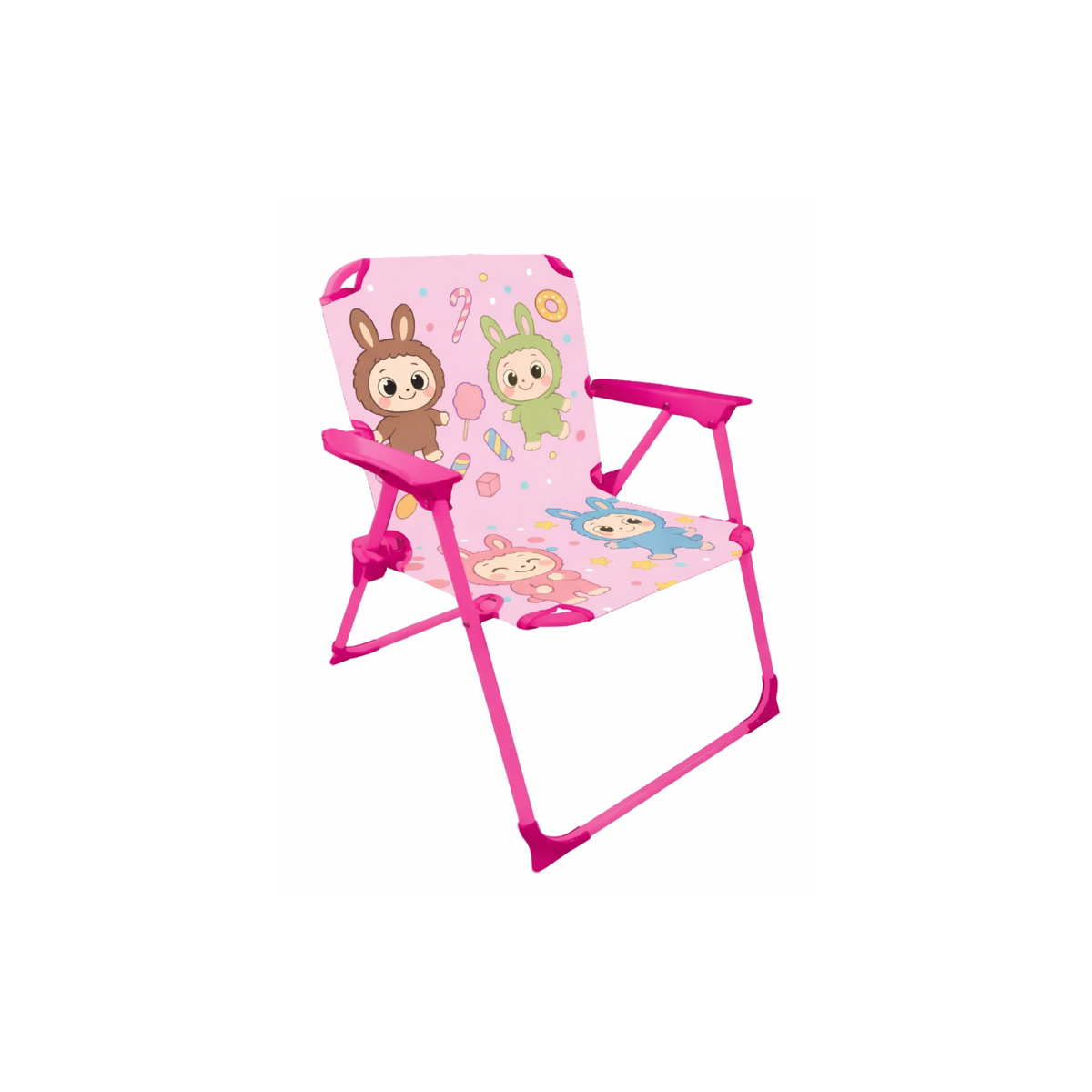 La Silla Metálica Plegable Labubus es perfecta para acompañar a niños y niñas en sus momentos de descanso y juego, tanto en casa como al aire libre. Su diseño colorido con divertidos personajes le da un toque alegre que la convierte en un complemento ideal para el día a día.