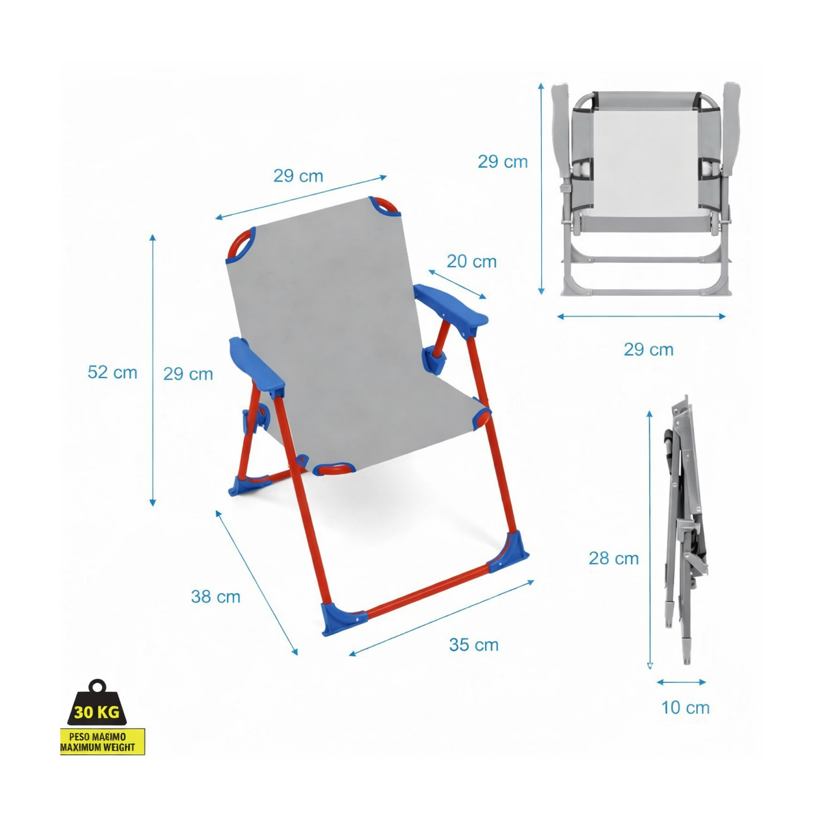 Cuenta con una estructura metálica firme que proporciona estabilidad y seguridad, mientras que su asiento de poliéster resulta cómodo y resistente para un uso continuado. Es una opción muy práctica para llevar al parque, la playa o incluso para utilizar en casa durante actividades como dibujar, leer o jugar.