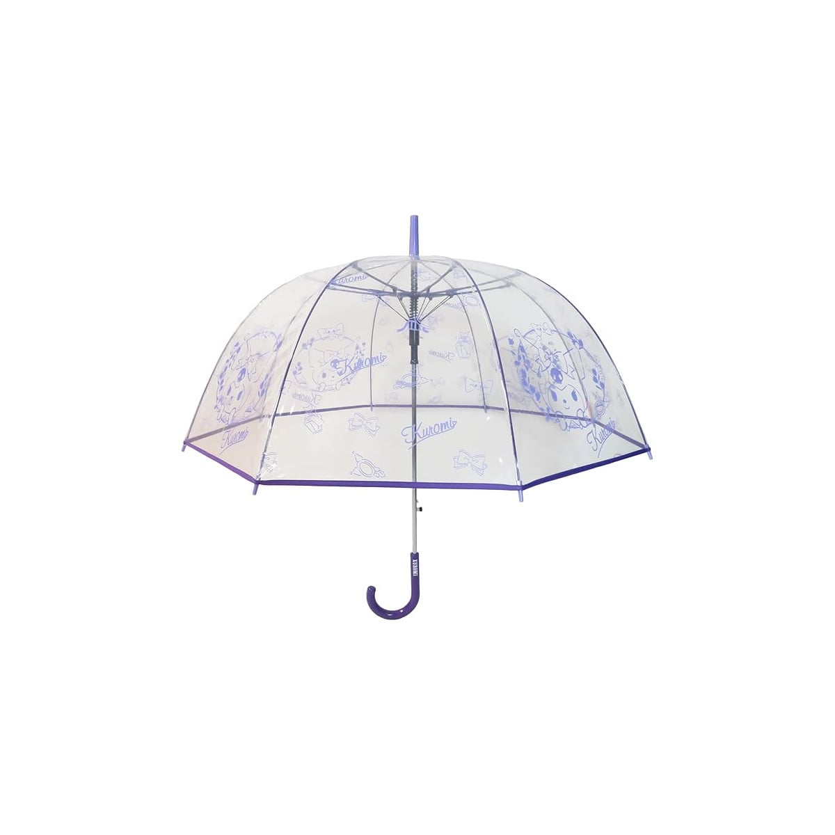 - Diseño: Paraguas tipo burbuja transparente con ilustraciones de Kuromi y Hello Kitty en tonos morados.
