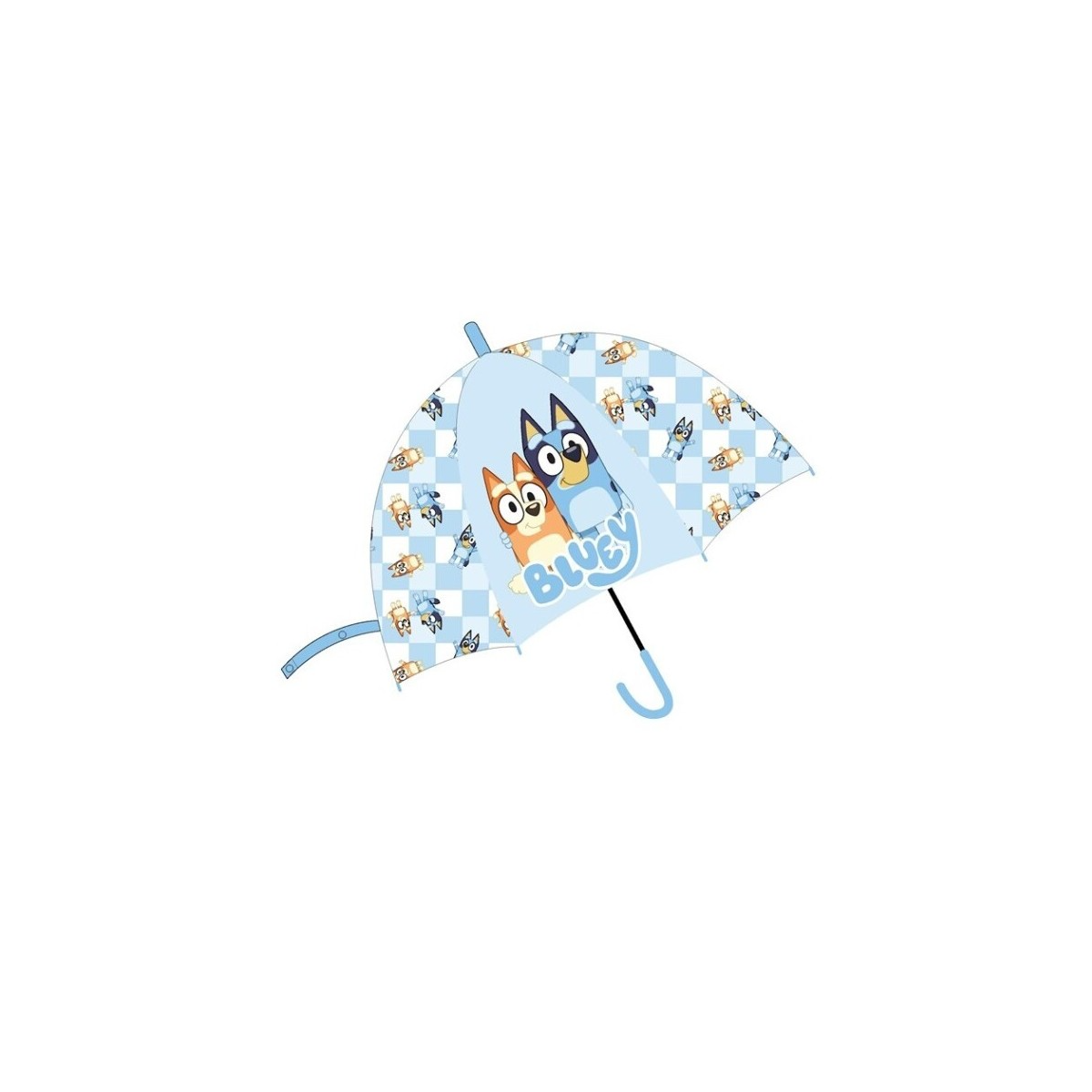 El Paraguas Seta Bluey Y Bingo es ideal para niños y niñas que quieren disfrutar de los días de lluvia acompañados de sus personajes favoritos. Su diseño tipo “seta” ofrece una mayor cobertura, ayudando a proteger mejor de la lluvia y el viento mientras los peques se divierten.