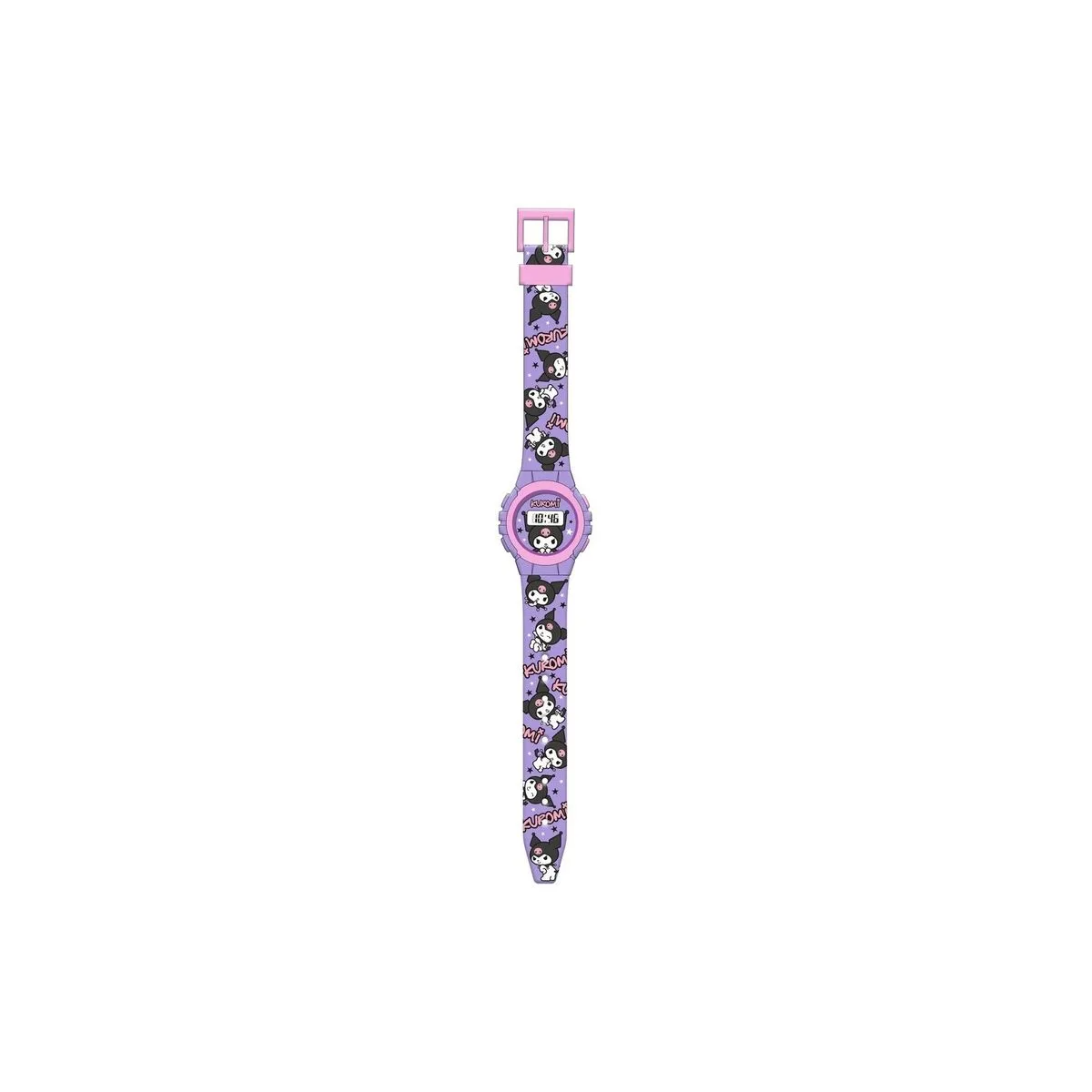 Reloj Digital Kuromi morado infantil ideal para peques a partir de 3 años. Fomenta el aprendizaje de la hora de forma divertida.