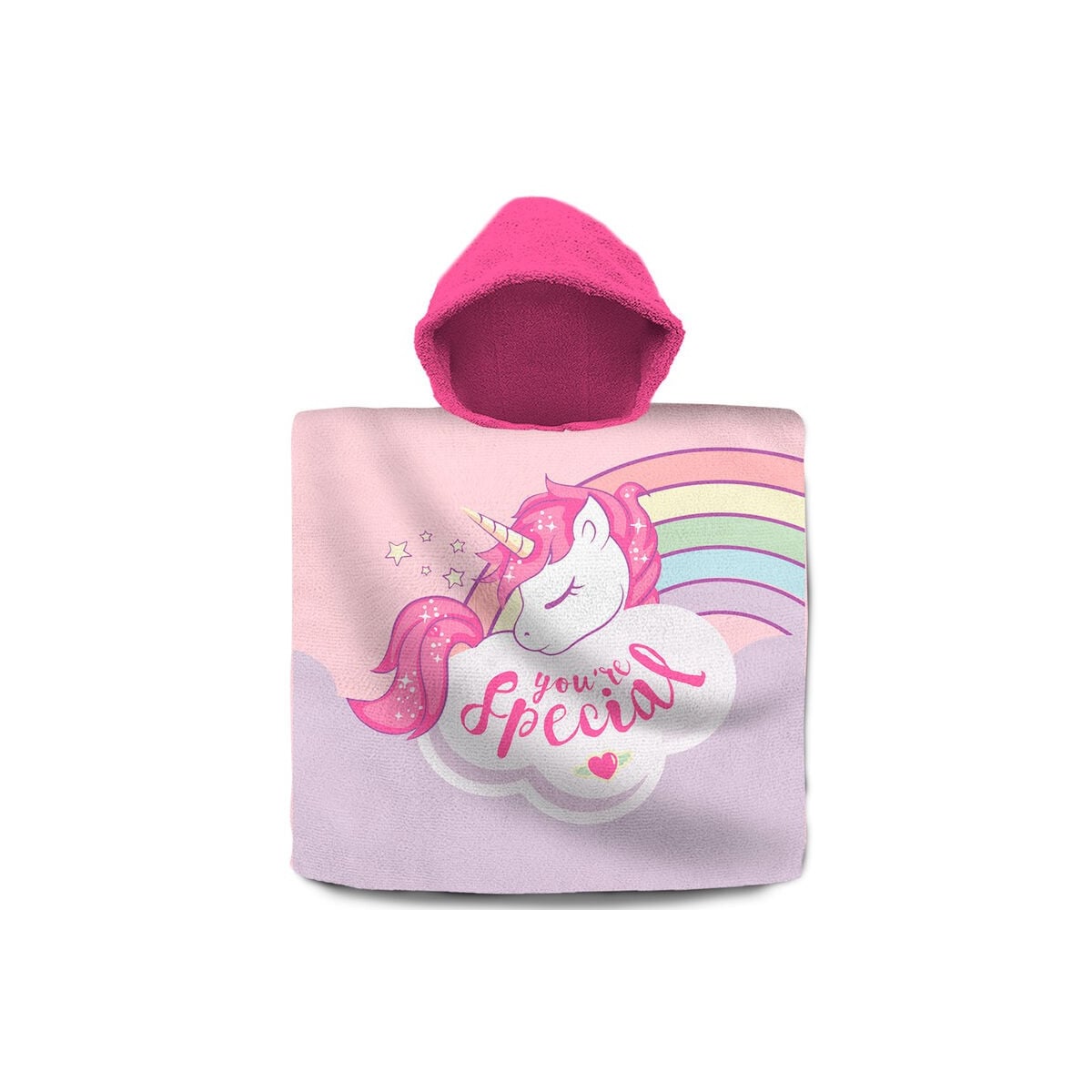 Gracias a su tamaño amplio y diseño envolvente, los niños podrán moverse con comodidad mientras permanecen secos y calentitos. Además, su estampado de unicornio con la frase "You Are Special" lo convierte en un complemento ideal para quienes aman la magia y la fantasía.