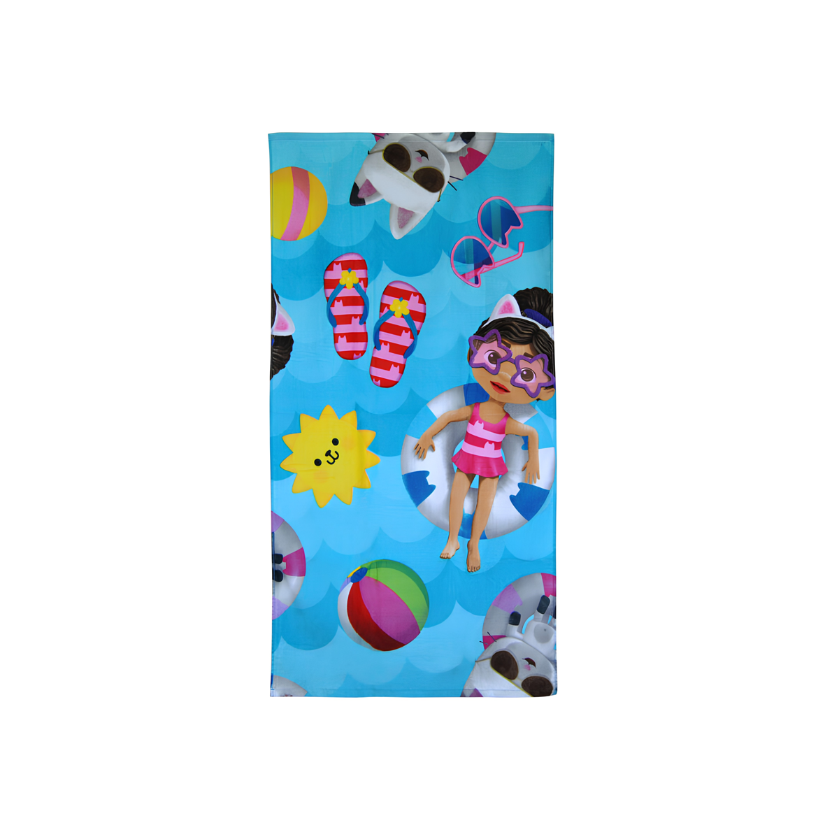 Descubre la Toalla De Playa La Casa De Gabby, con diseño veraniego lleno de color. Suave, absorbente y perfecta para playa o piscina, ideal para niños y niñas fans de la serie.