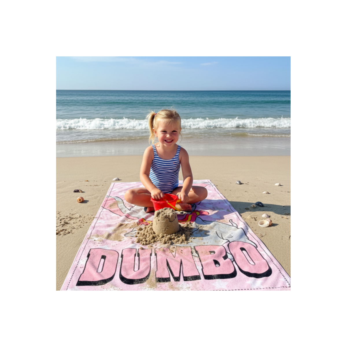 Práctica y con un diseño encantador, la Toalla De Playa Microfibra Dumbo acompaña a los más pequeños en sus aventuras veraniegas, aportando comodidad y ese toque mágico que tanto les gusta.