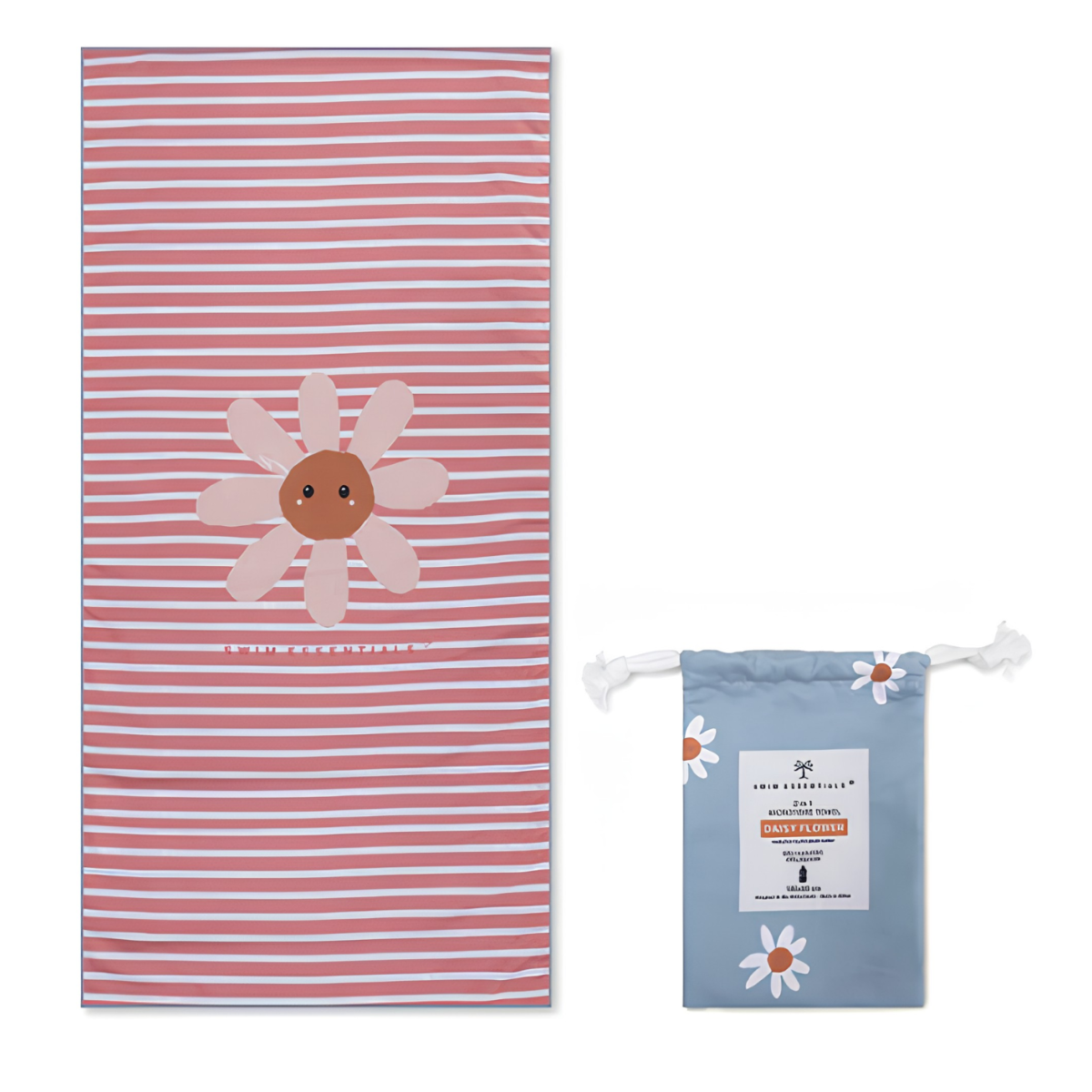 Descubre la Toalla Microfibra Margaritas, reversible con rayas y margaritas. Ligera, de secado rápido y con bolsa, perfecta para playa o piscina con estilo y comodidad.