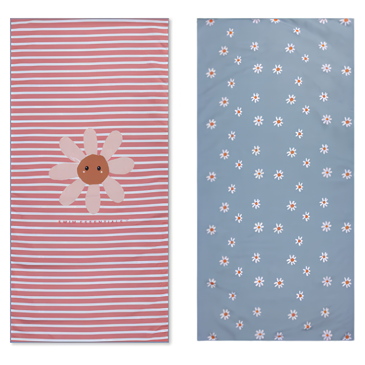 La Toalla Microfibra Margaritas es una opción ideal para quienes buscan una toalla práctica con un diseño alegre y diferente. Por un lado presenta un bonito estampado de rayas con una flor protagonista, y por el otro es reversible con un diseño de margaritas que le da un toque aún más veraniego y divertido. Dos estilos en una sola toalla para cambiar según el momento.