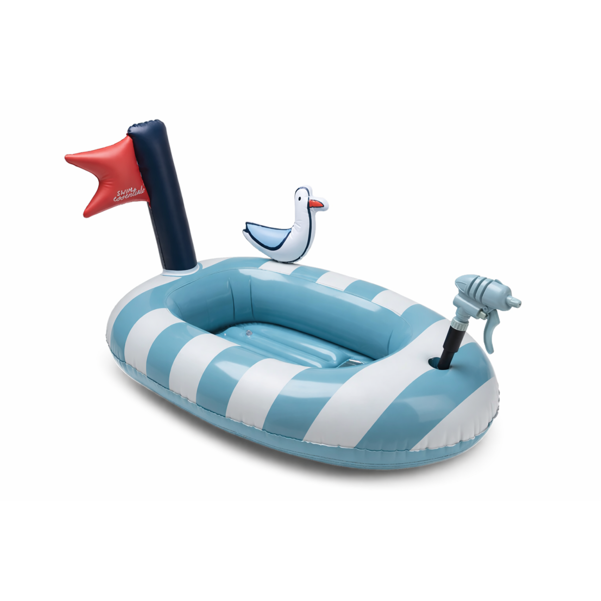 La barca hinchable gaviota es una opción ideal para que los peques disfruten del agua con comodidad y diversión. Su diseño en color blanco con estampado de gaviota le da un toque veraniego muy original, perfecto para destacar en la piscina o en la playa.