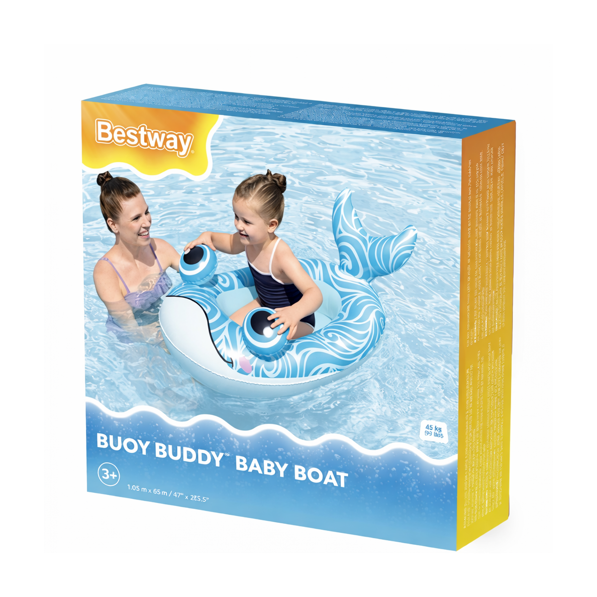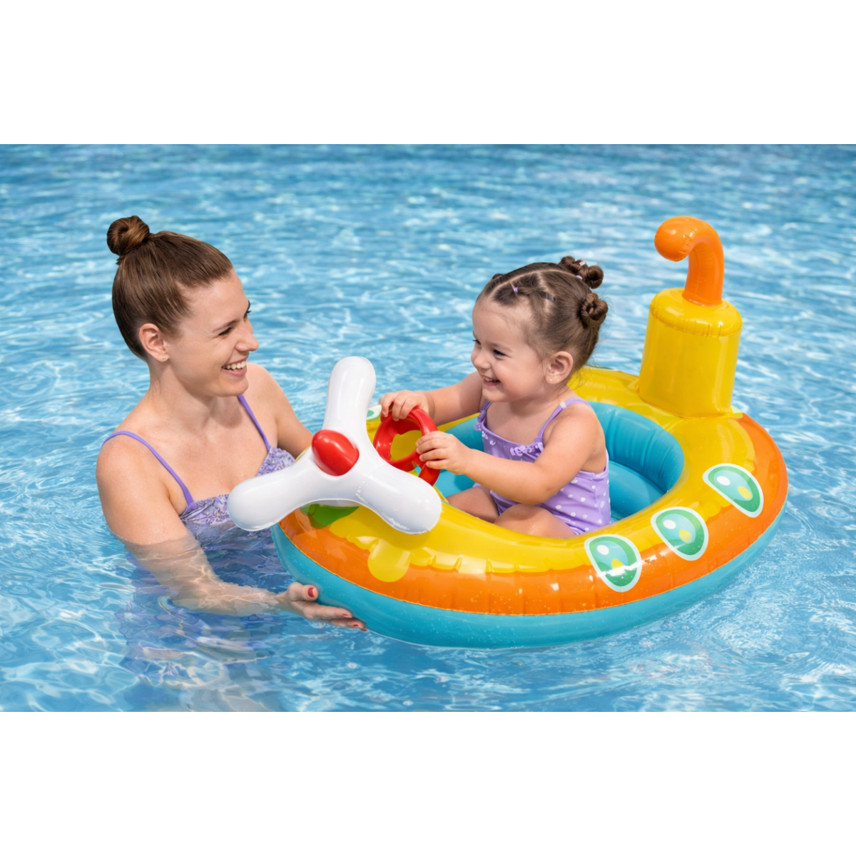 Fabricada por Bestway, esta barca está pensada para ofrecer estabilidad y comodidad dentro del agua. Su estructura hinchable permite que los niños y niñas se mantengan sentados mientras juegan o se desplazan, facilitando el uso tanto en piscina como en la playa bajo supervisión.