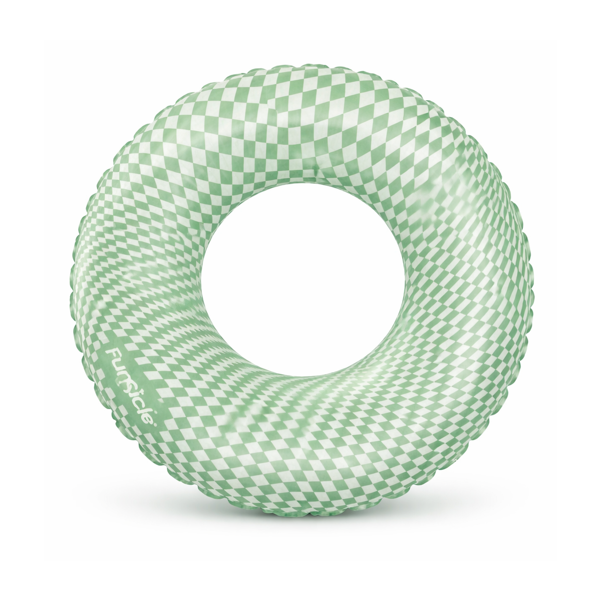 La marca FunSicle destaca en este modelo por su original estampado de cuadros en tonos verdes, que crea un efecto visual dinámico y muy llamativo dentro del agua. Este diseño diferente lo hace destacar frente a otros flotadores más tradicionales, aportando un toque fresco y actual a cualquier plan acuático.