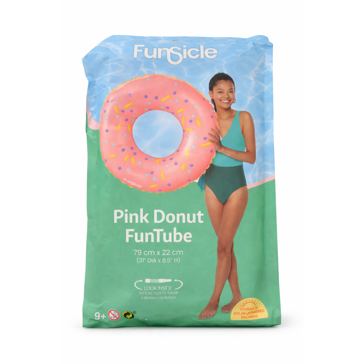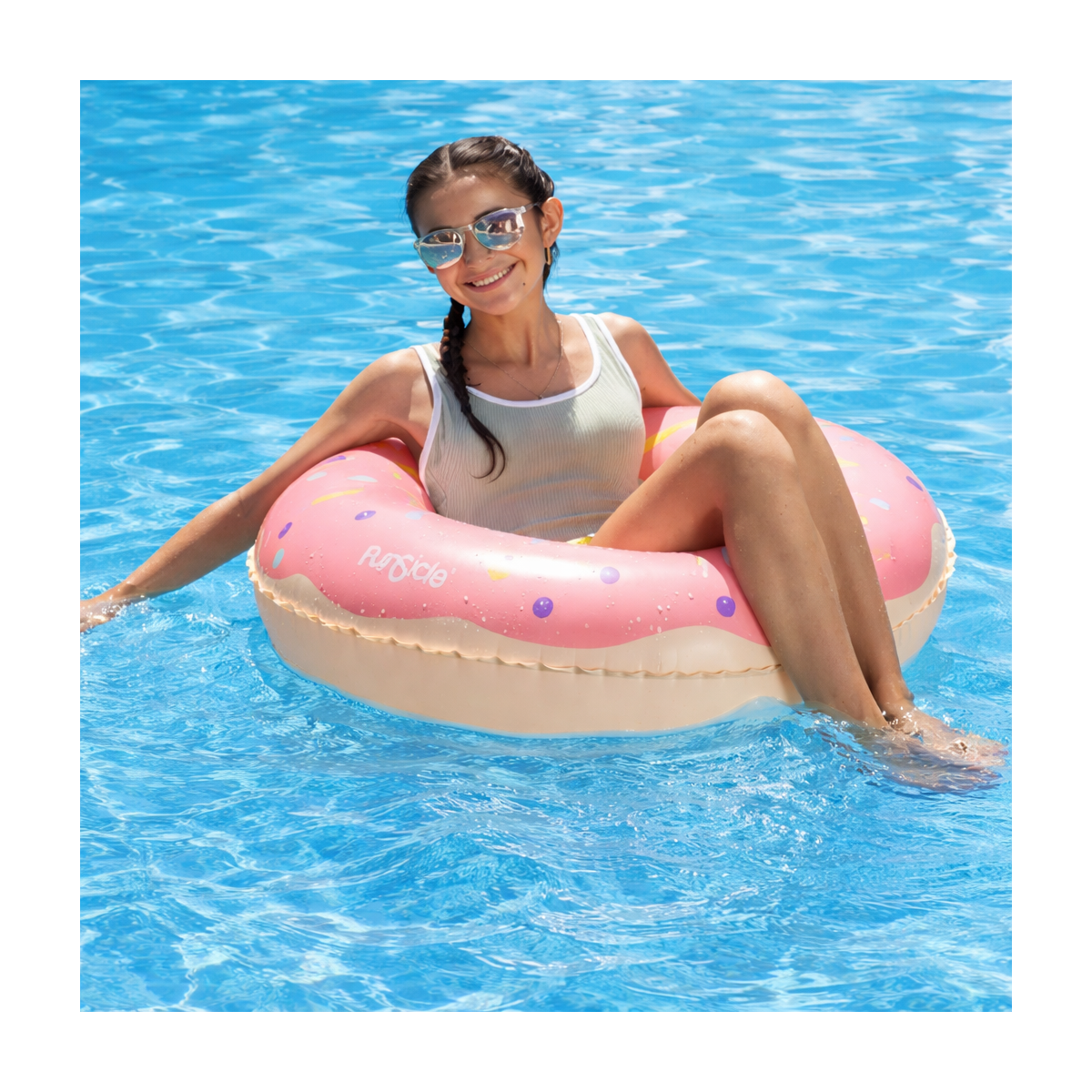 El Flotador Circular Donut Rosa es el complemento perfecto para niños y niñas a partir de 9 años que quieren disfrutar al máximo del verano en la piscina o la playa. Su divertido diseño en forma de donut con colores suaves y detalles de “sprinkles” lo convierte en un hinchable muy llamativo y original.