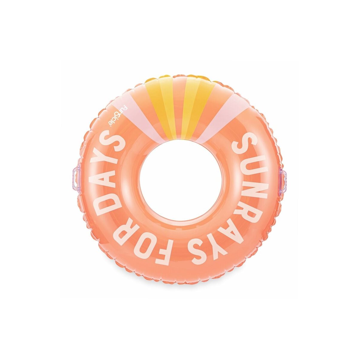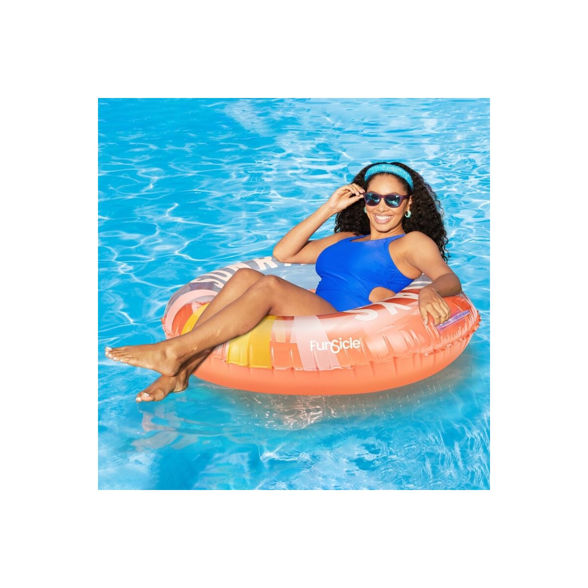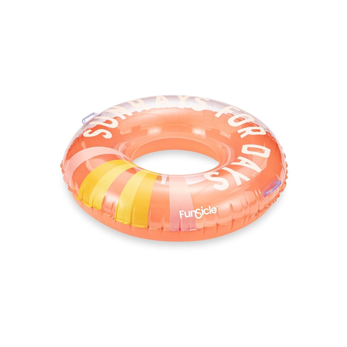 Flotador circular Funsicle Sunray en tonos salmón, amplio y cómodo, ideal para relajarse o jugar en la piscina durante el verano.